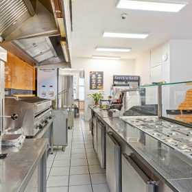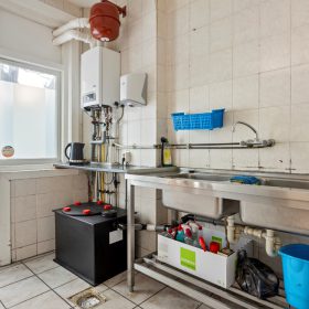 Daarnaast beschikt het pand over een ruime kelder, geschikt voor opslag en ondersteunende functies. De combinatie van compacte verkoopruimte, goede keukenfaciliteiten en royale opslag maakt dit een efficiënte en prettig werkbare locatie.