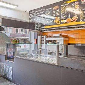 Deze afhaal- en bezorgzaak aan de Hoofddorpweg, nabij het Hoofddorpplein, is nu beschikbaar voor overname.