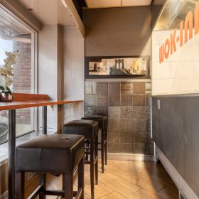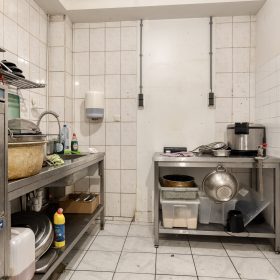 De zaak heeft een oppervlakte van circa 50 m² en is praktisch en overzichtelijk ingericht. Aan de voorzijde bevindt zich het afhaal- en bestelgedeelte met een beperkte zitgelegenheid voor gasten die ter plaatse willen eten. Aansluitend is de open keuken gesitueerd, voorzien van professionele apparatuur en een afzuiginstallatie met afvoer naar het dak. Aan de achterzijde is ruimte voor voorbereiding en opslag.