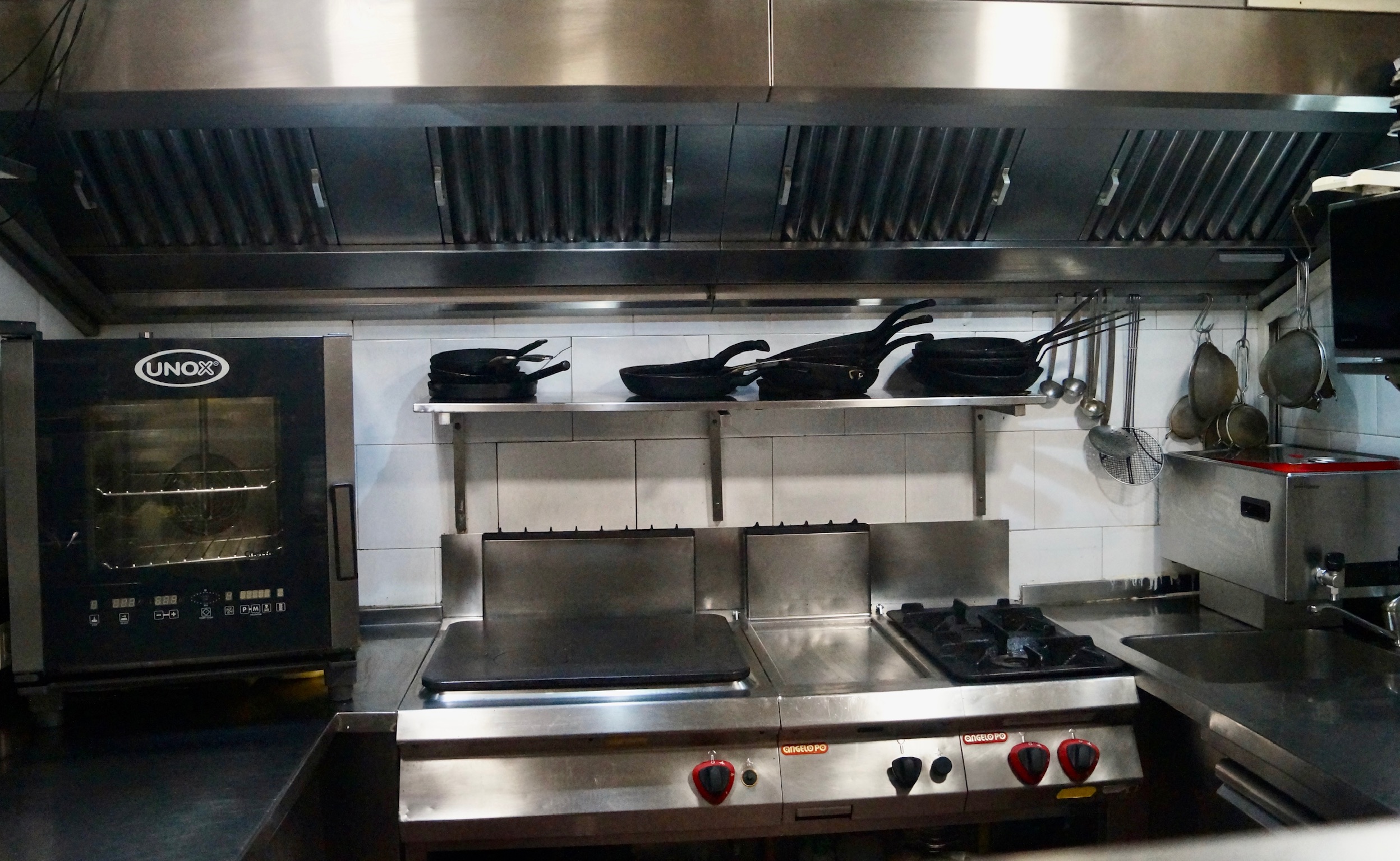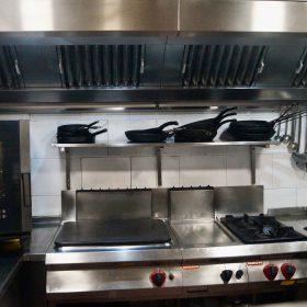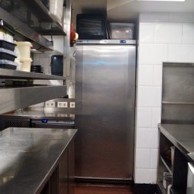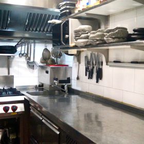 Achterin bevindt zich de baropstelling. De hoogwaardige en professioneel ingerichte keuken is gesitueerd in de benedenverdieping. Tussen de keuken en de bar is een goederenlift aanwezig, wat bijdraagt aan een efficiënte en praktische bedrijfsvoering.