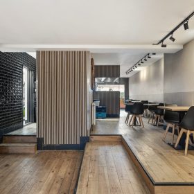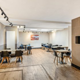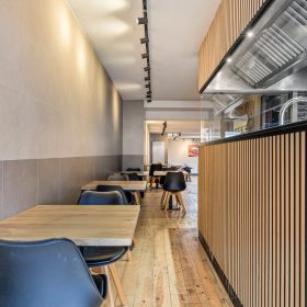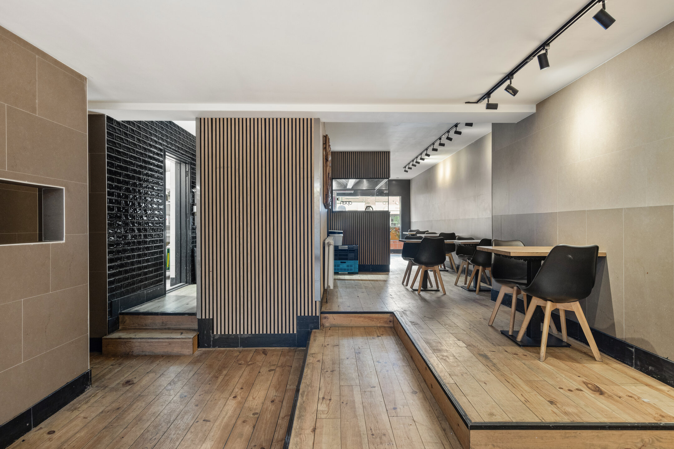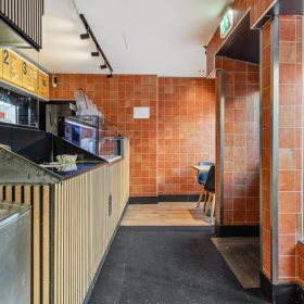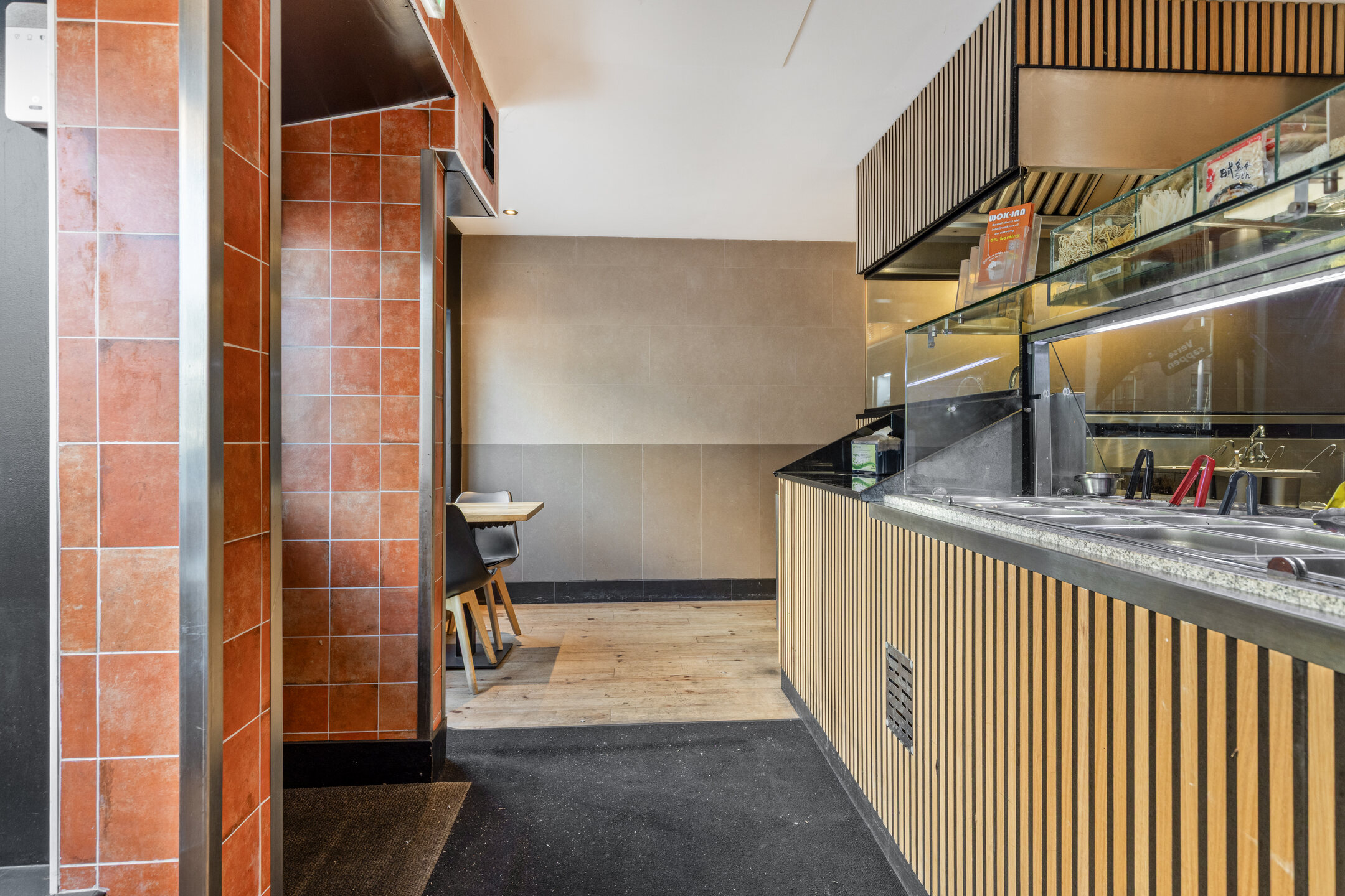 Aan de achterzijde bevinden zich ruime voorbereidingsruimten, koel- en vriesfaciliteiten, spoelvoorzieningen en opslag, waaronder een royale kelderruimte. De indeling sluit goed aan op een efficiënte afhaal- en bezorgexploitatie en biedt volop mogelijkheden voor voortzetting van het huidige concept of een andere invulling binnen de horeca.