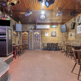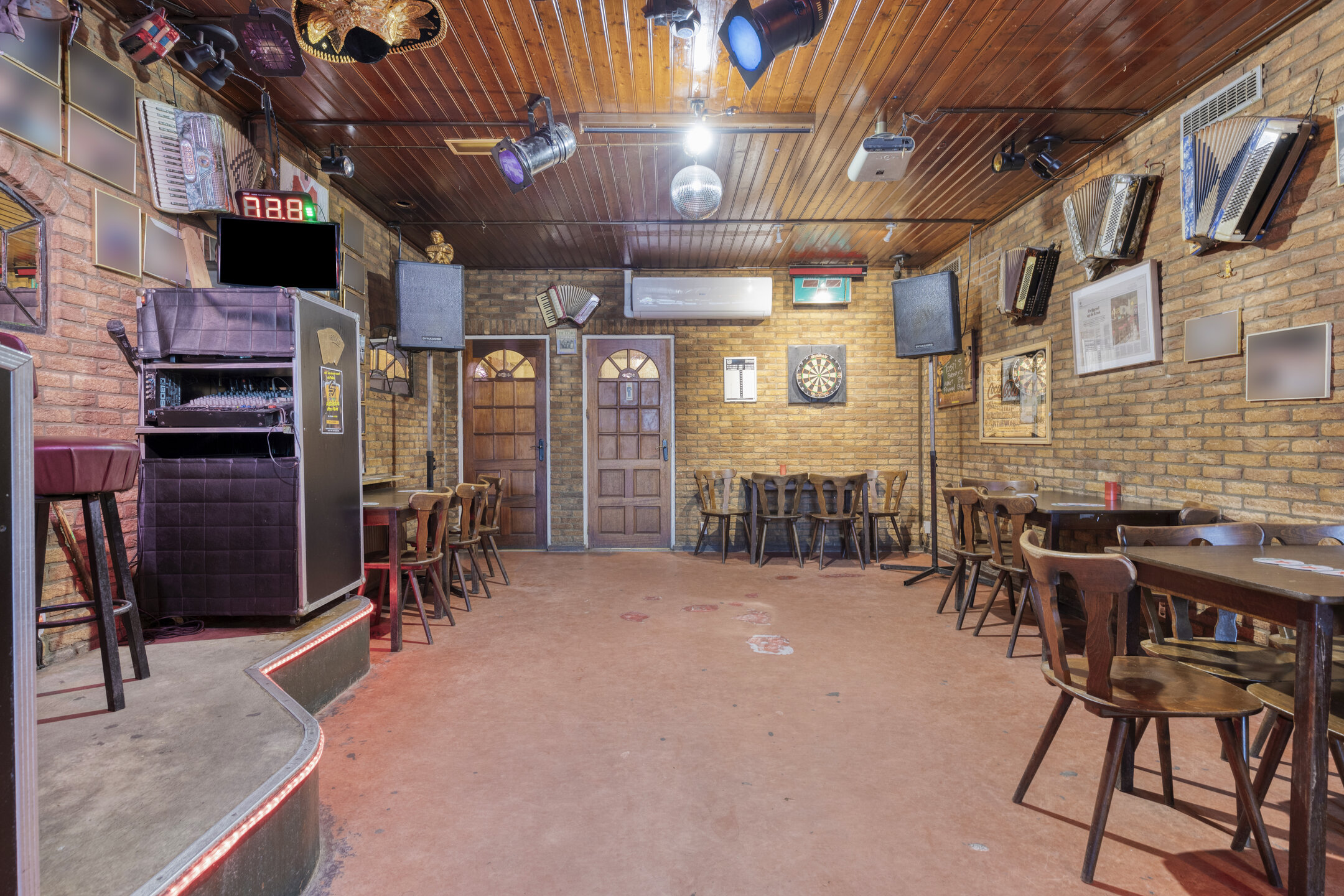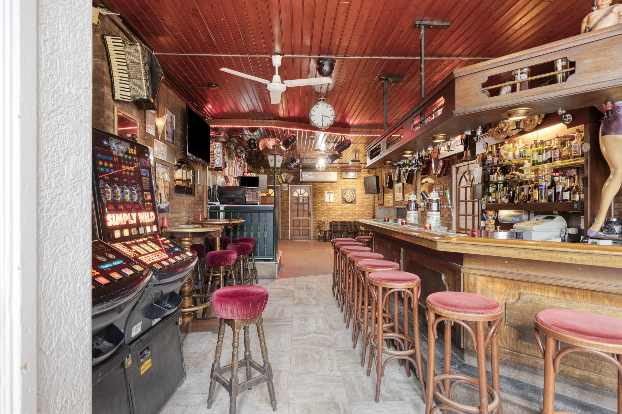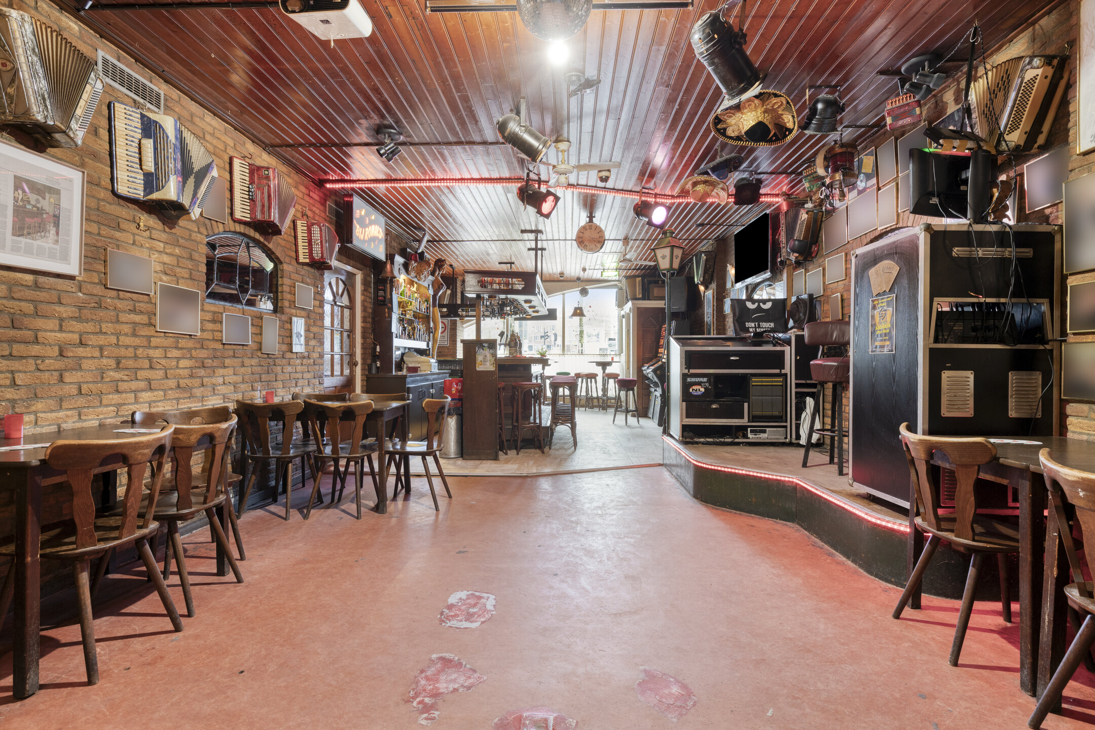 Bij binnenkomst valt de klassieke baropstelling direct op. De ruimte is open van opzet en biedt de mogelijkheid voor live muziekoptredens dankzij een reeds aanwezige podiumruimte. De inrichting heeft een gezellige kroegentoon die goed aansluit bij de invulling als bruincafé, met ruimte voor diverse sta- en barkruktafels en een losse indeling die zich flexibel laat gebruiken.
