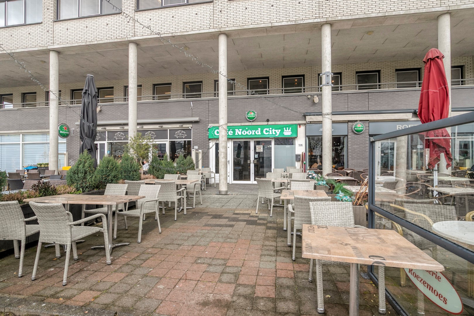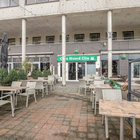 Deze caféruimte met ruim terras aan het Buikslotermeerplein is nu beschikbaar voor overname.