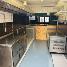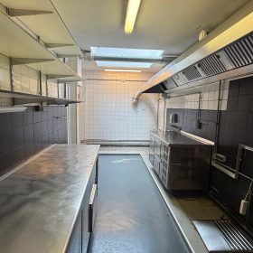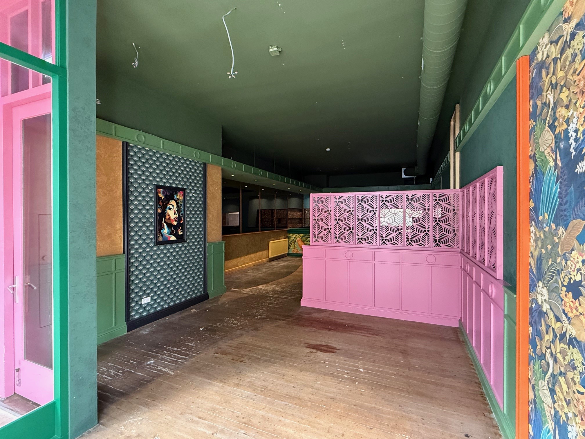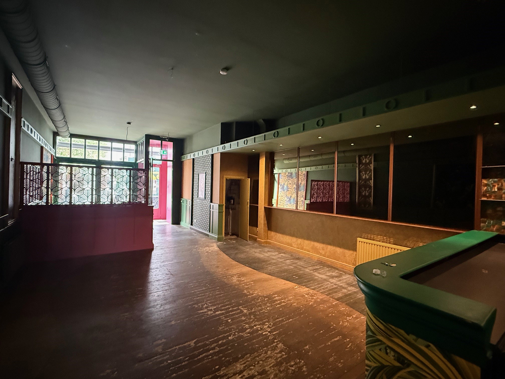 De ruimte wordt casco opgeleverd en biedt daarmee een uitstekende basis voor een eigen invulling en concept. Bij binnenkomst betreed je de verkoopruimte, met achterin een plek waar een bar gerealiseerd kan worden. Daarachter bevindt zich de ruimte voor de keuken, die eveneens casco wordt opgeleverd.