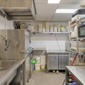 Het restaurant is verdeeld over meerdere niveaus en beschikt over een terras aan het water. Binnen is een professioneel ingerichte keuken aanwezig en zijn de faciliteiten netjes verzorgd.