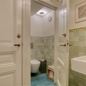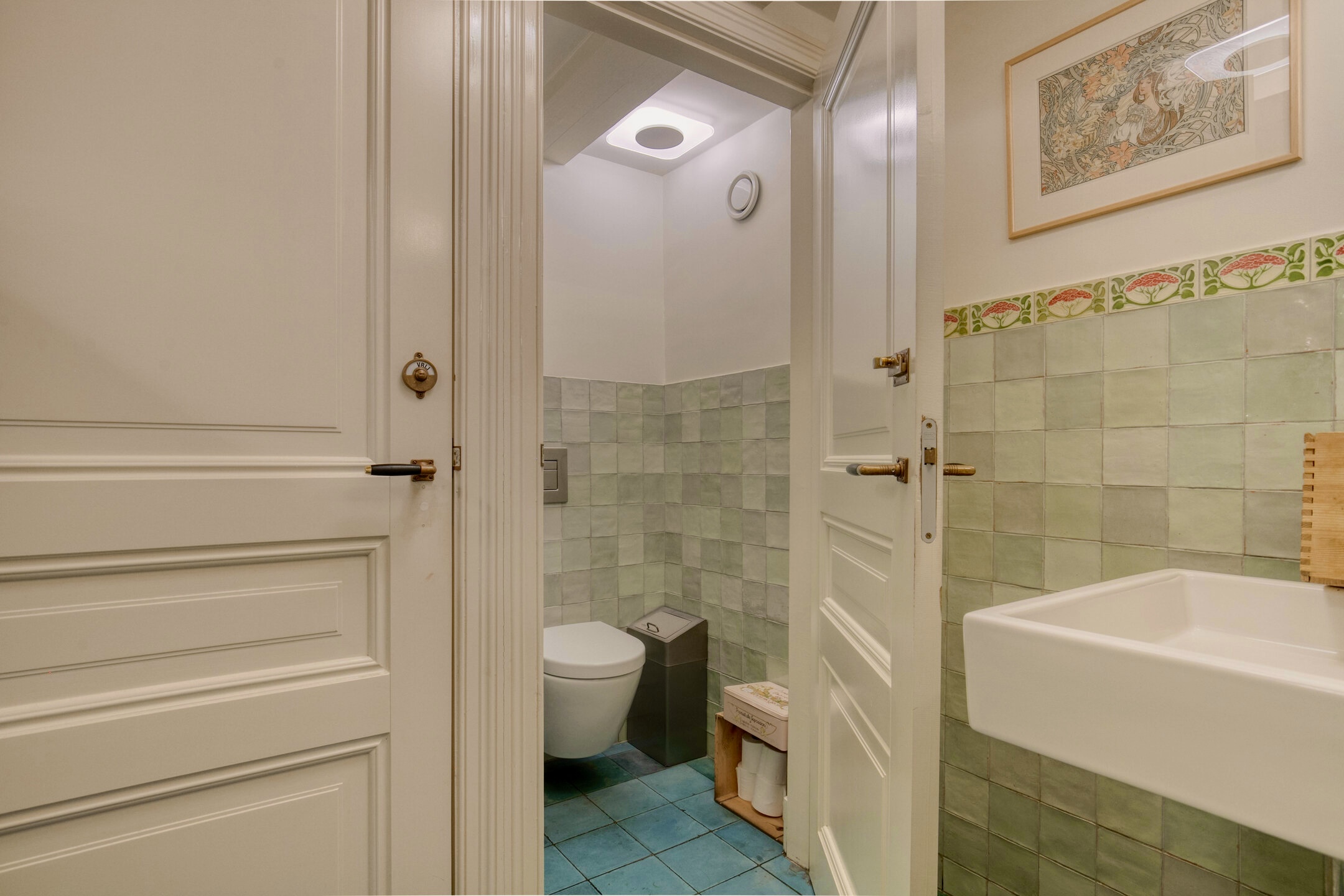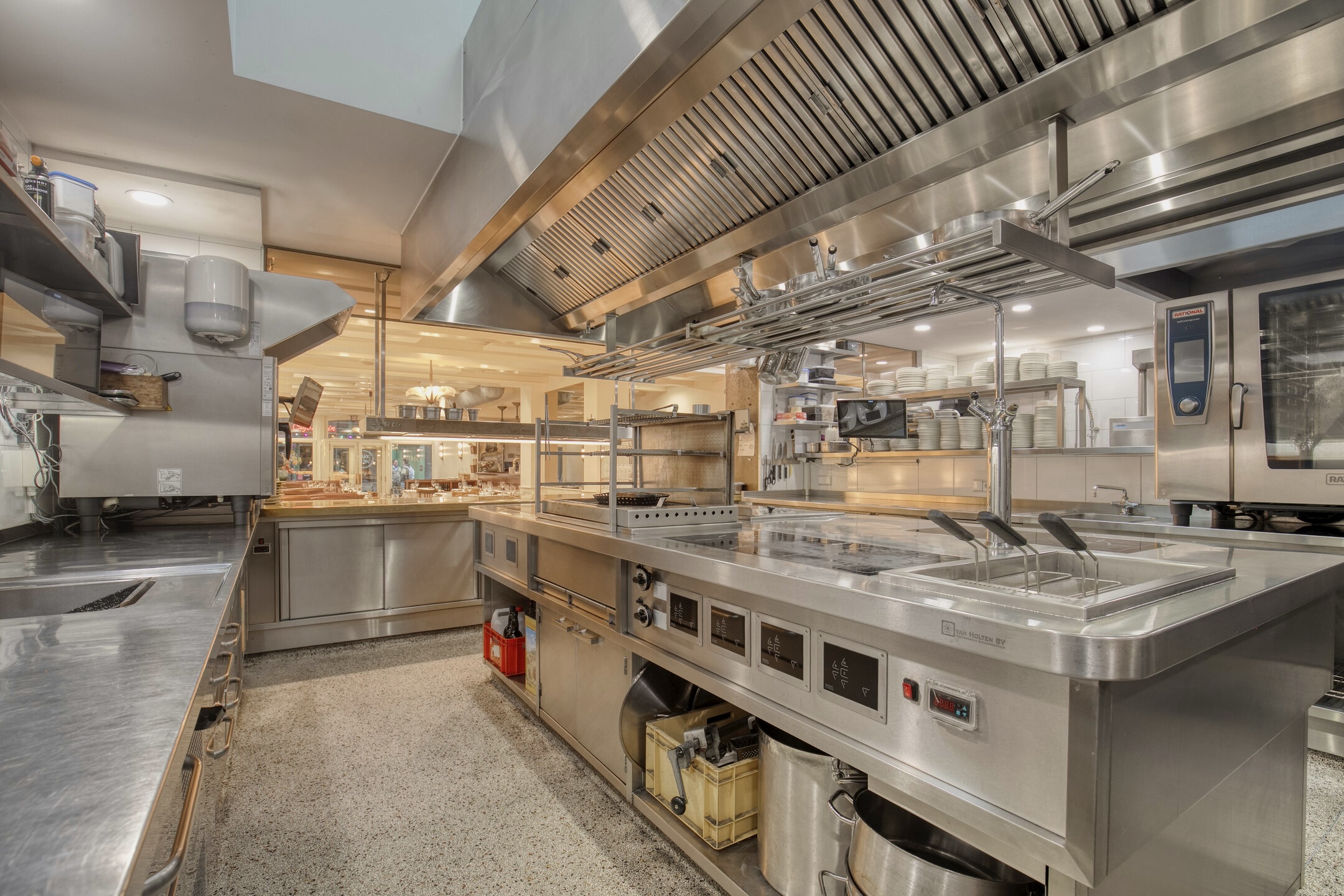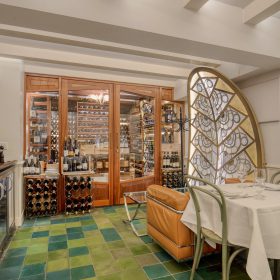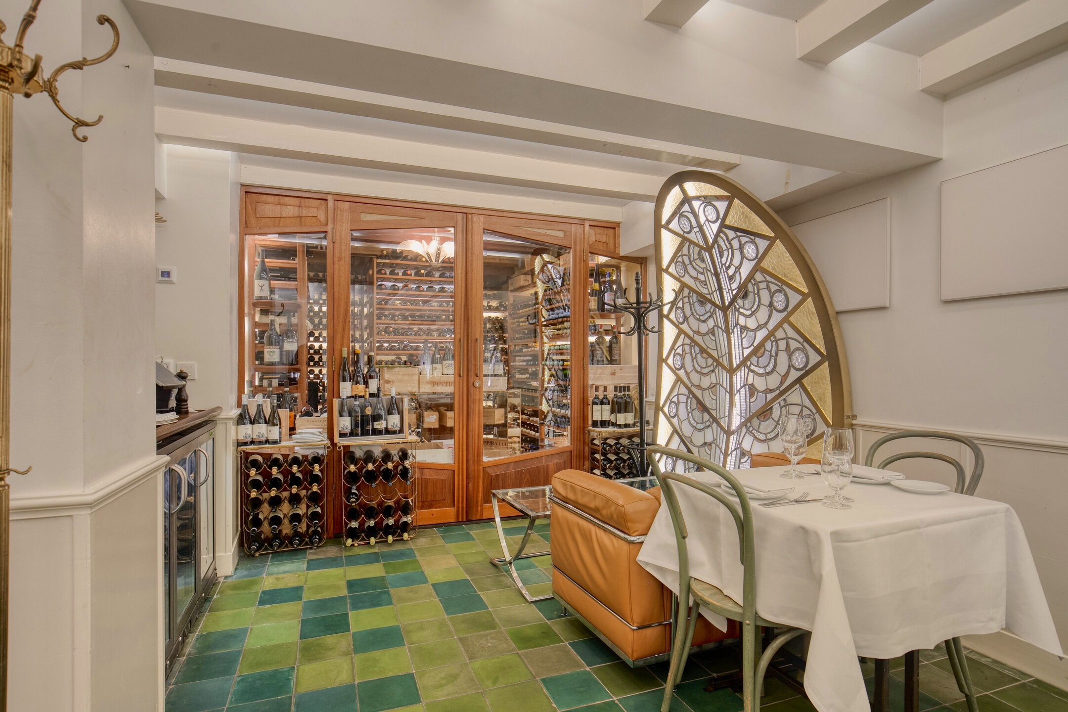 Een bijzonder element is de wijncave in het souterrain. Deze knusse ruimte biedt plaats aan circa 30 gasten en is aangekleed met kunst aan de muren en een imposante, klimaat gereguleerde wijnkamer achter glazen deuren. Dit maakt de ruimte ideaal voor private dining, wijnproeverijen of exclusieve diners in intieme setting.