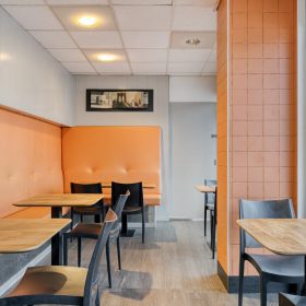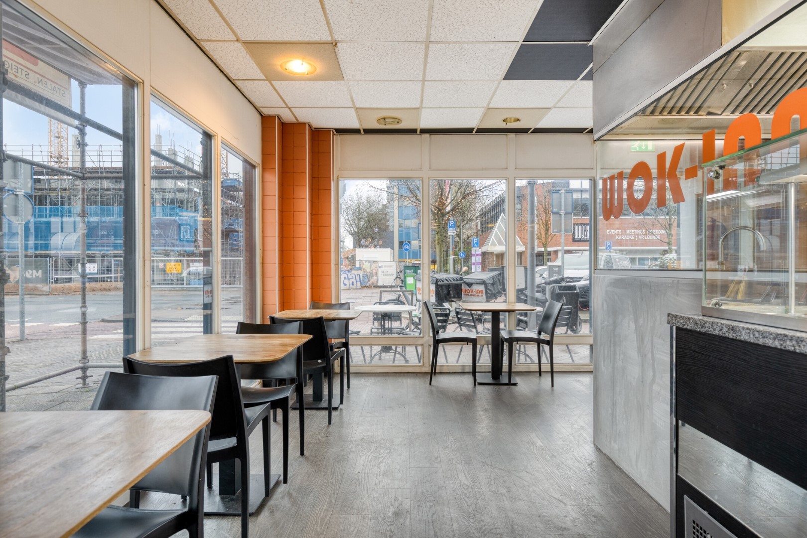 Een afhaal- en bezorgzaak met herkenbaar wokconcept aan de Kruisweg in Hoofddorp. De focus ligt op afhalen en bezorgen, met enkele zitplaatsen voor gasten. Het pand is praktisch ingericht voor efficiënte bedrijfsvoering en snelle doorstroming. Grote raampartijen zorgen voor een open uitstraling en goede zichtbaarheid.