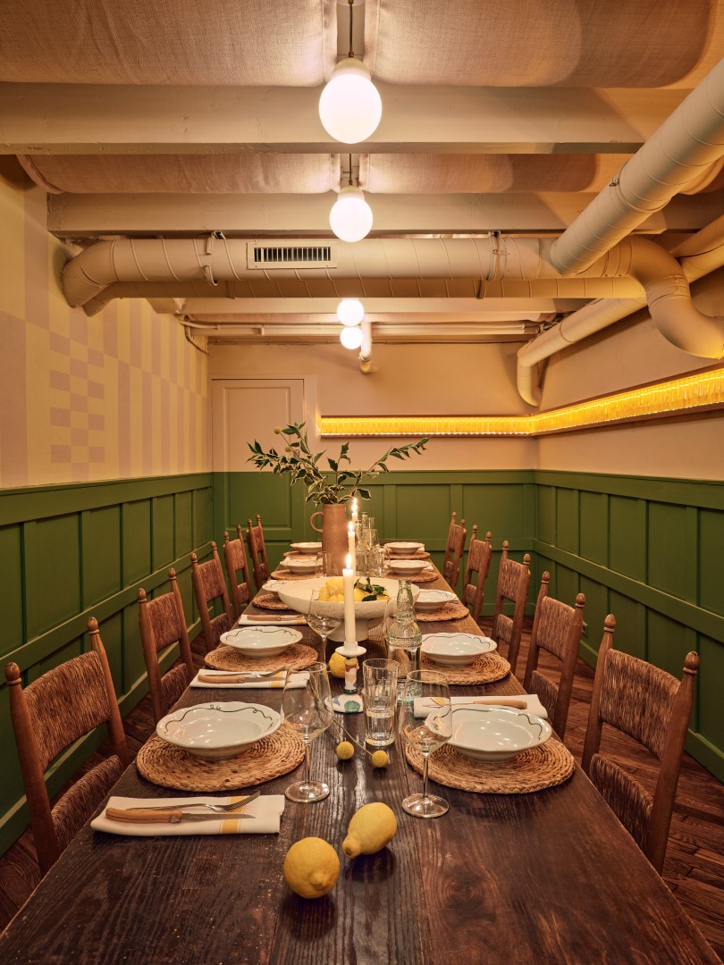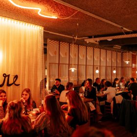 Het interieur is met oog voor detail ontworpen en straalt stijl en warmte uit. De horecaruimte biedt plaats aan circa 60 gasten, met de mogelijkheid tot het organiseren van private diners in een flexibel af te scheiden ruimte. Bij binnenkomst valt direct de uitnodigende ronde bar op, een echte blikvanger in het hart van de zaak. De open keuken draagt bij aan de levendige sfeer en zorgt voor een transparante beleving.