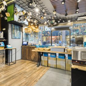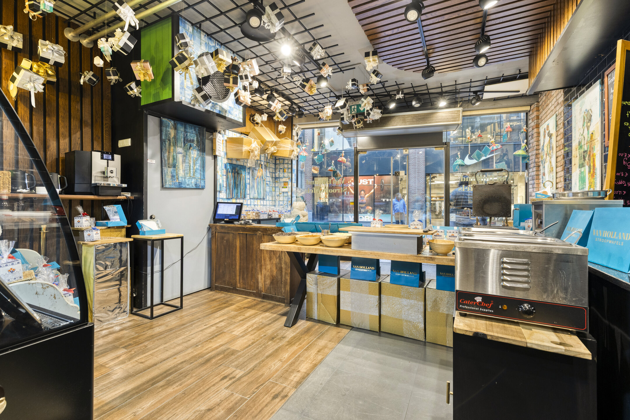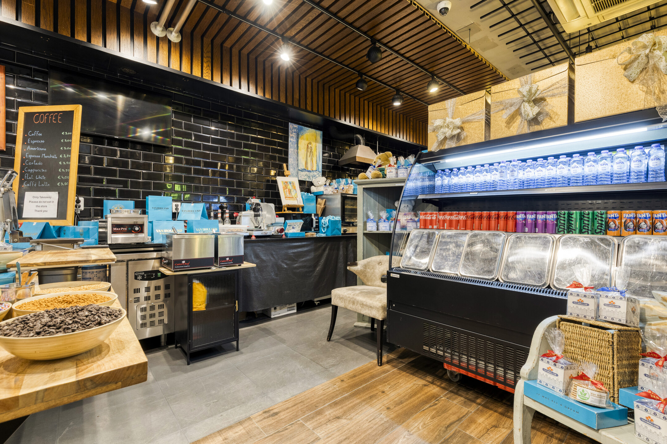 Het betreft het volledige pand met een totale oppervlakte van circa 215 m², verdeeld over drie lagen. Op de begane grond bevindt zich de verzorgde en overzichtelijke verkoopruimte. De eerste verdieping is ingericht met keuken en opslag en op de tweede verdieping is aanvullende opslag- en kantoorruimte aanwezig. Ook is er nog een 3e verdieping aanwezig. De indeling is praktisch en sluit goed aan bij een mengformule zonder zitplaatsen.