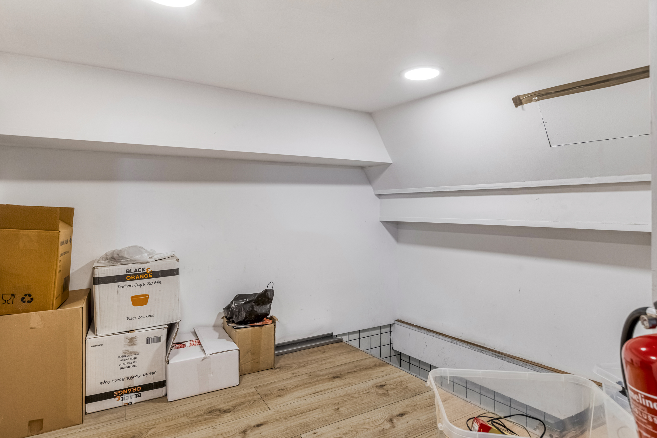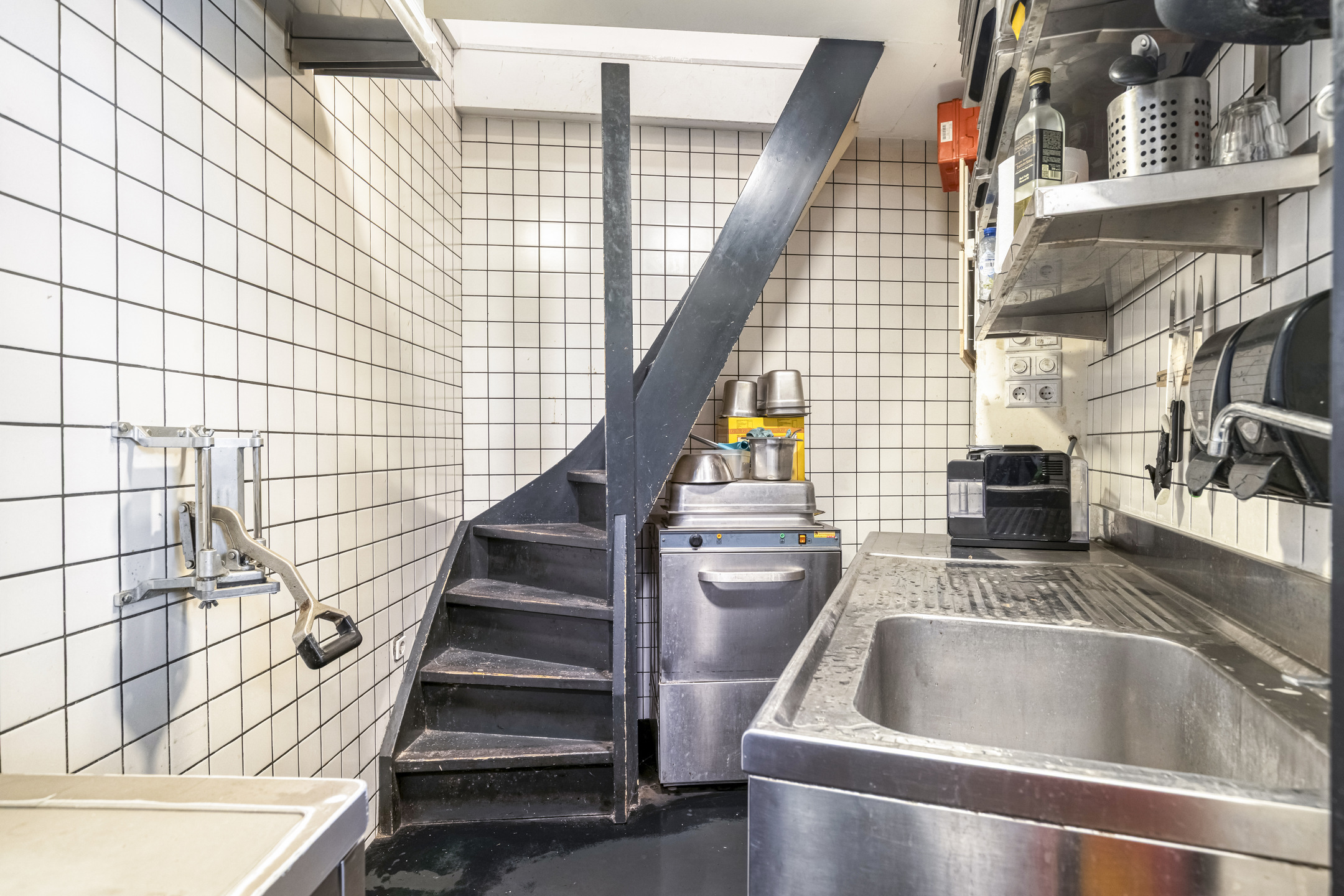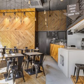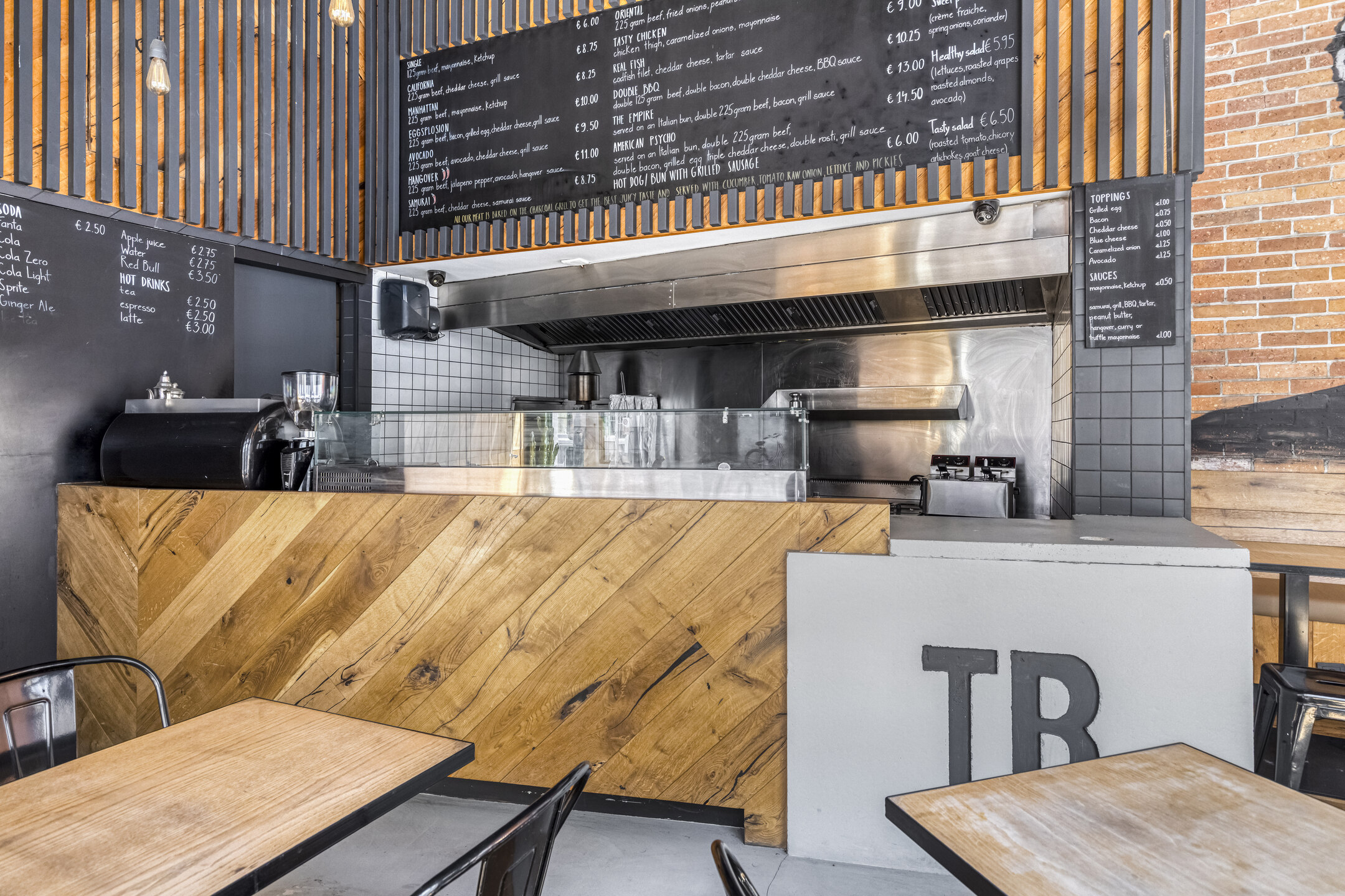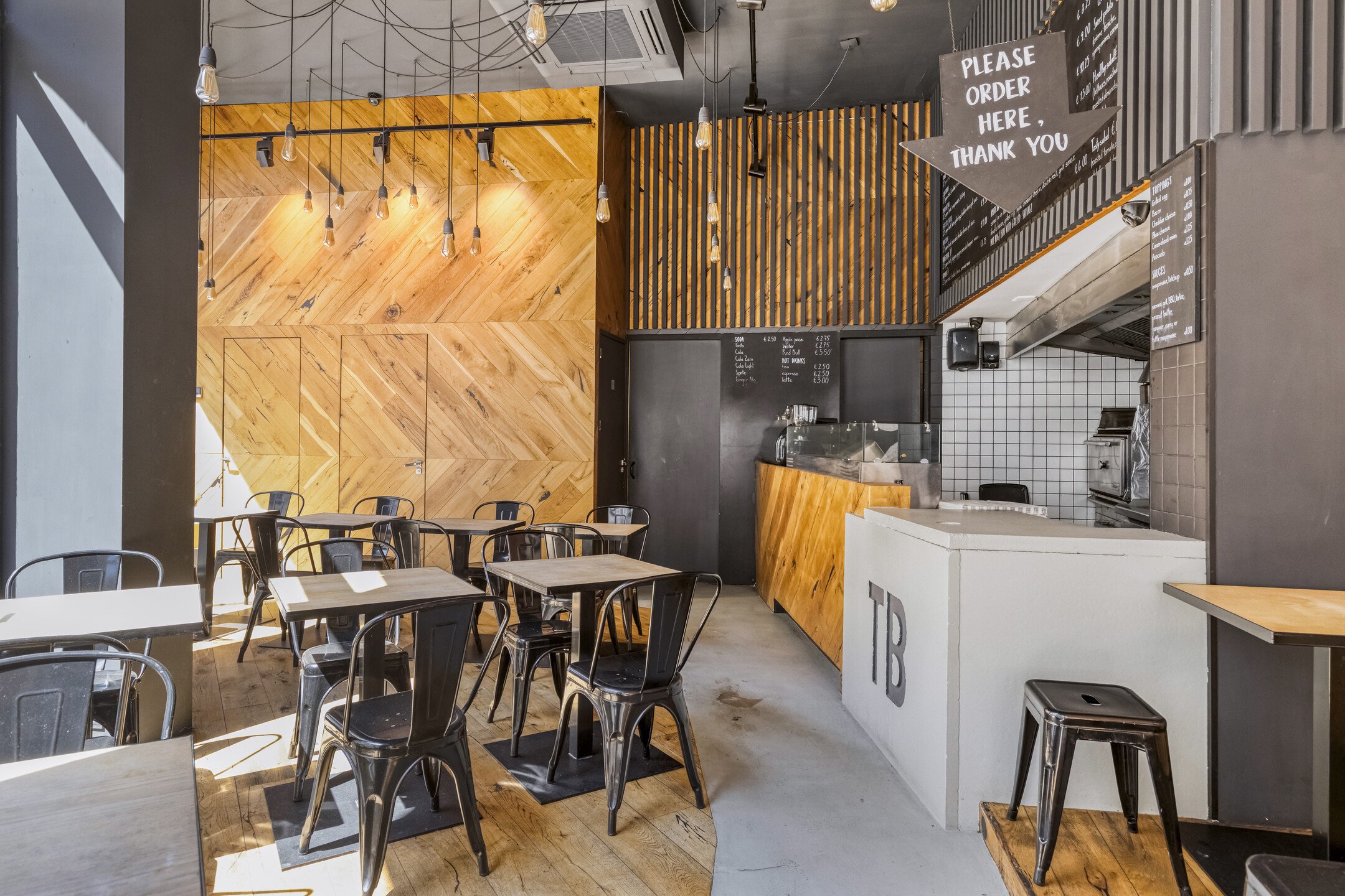 De zaak beschikt over een brede gevel met grote raampartij aan de voorzijde. Eenmaal binnen treft met aan de voorzijde zitplaatsen en daar achter gelegen een open keuken. De entresol is geschikt voor opslag.