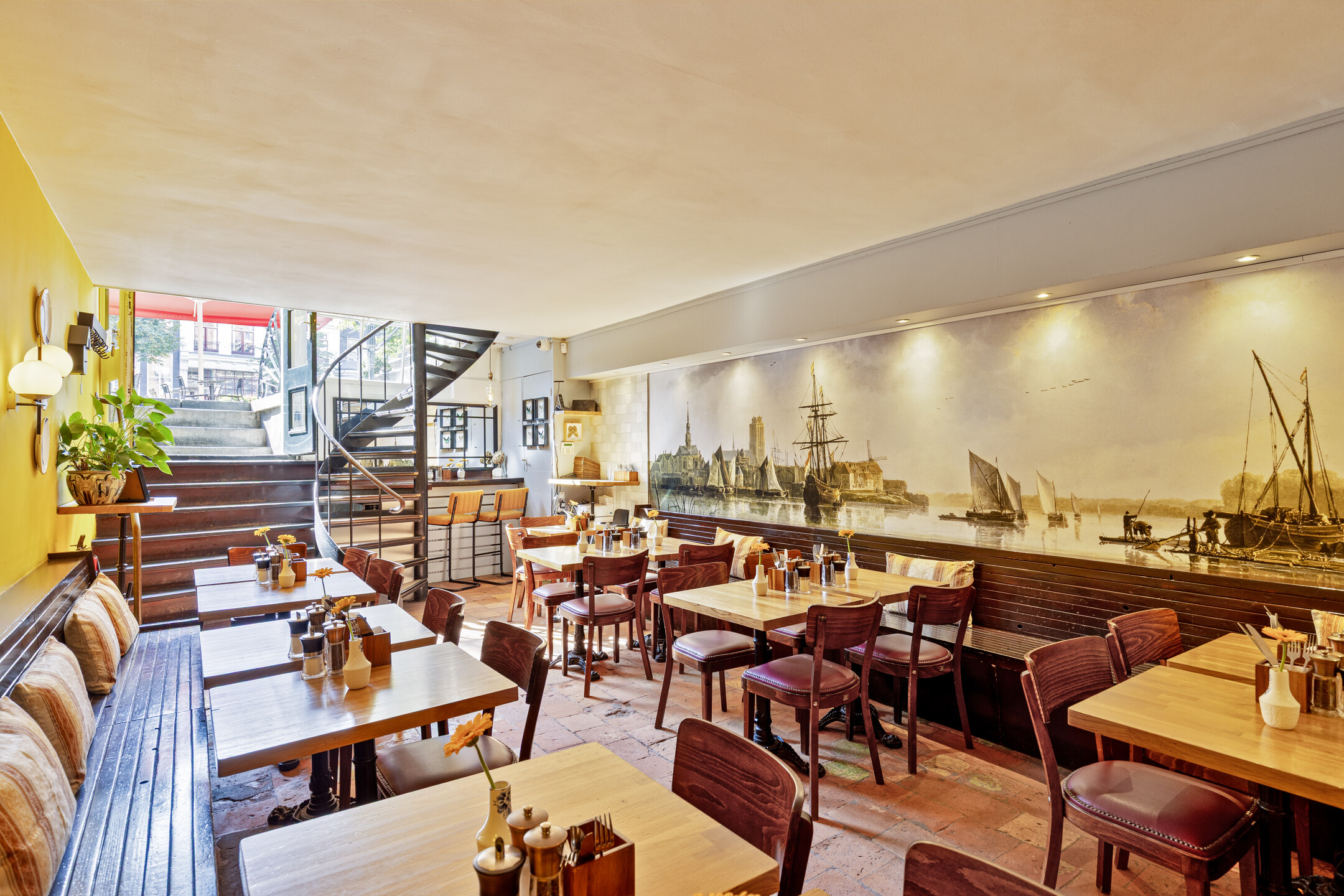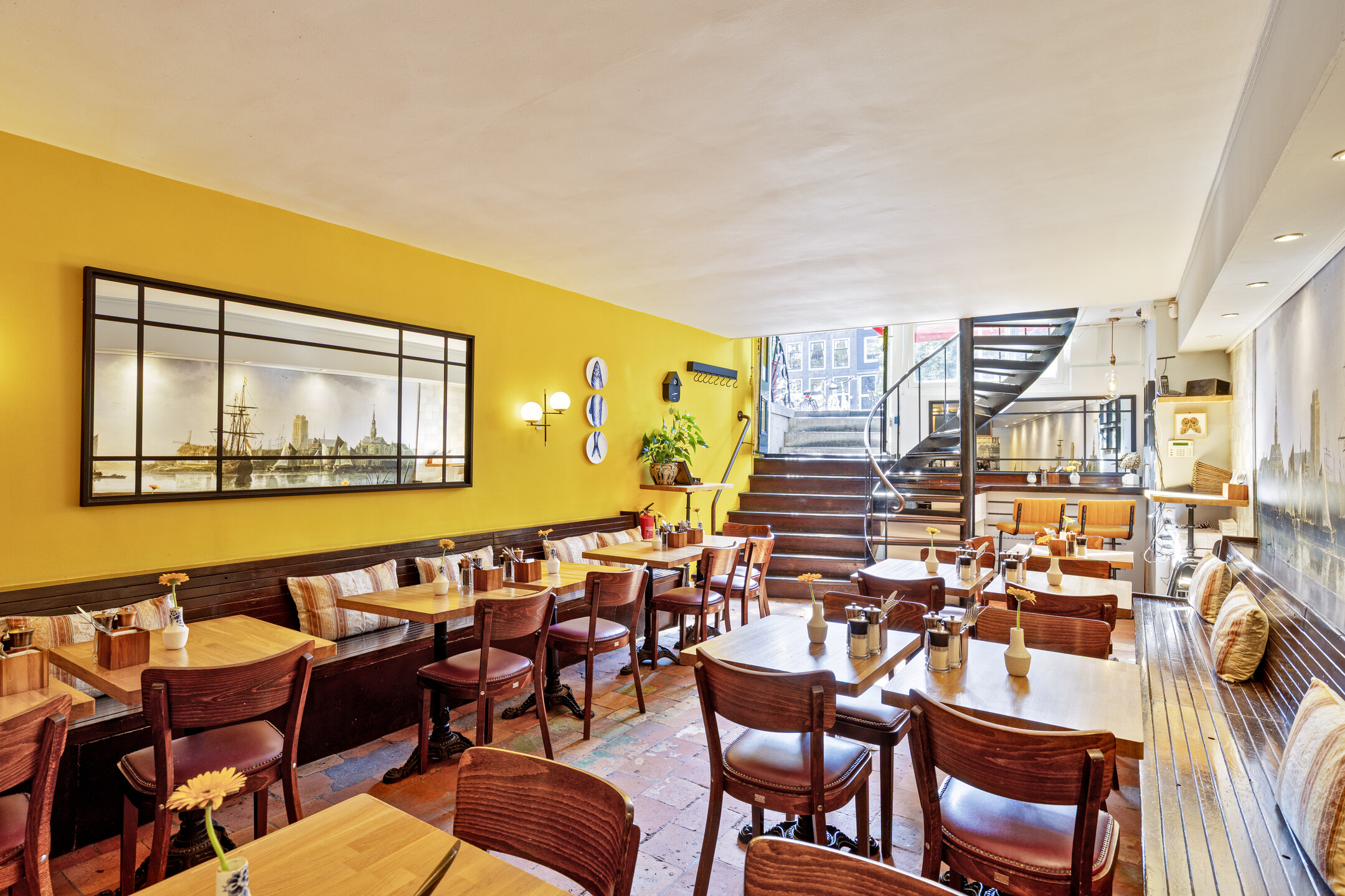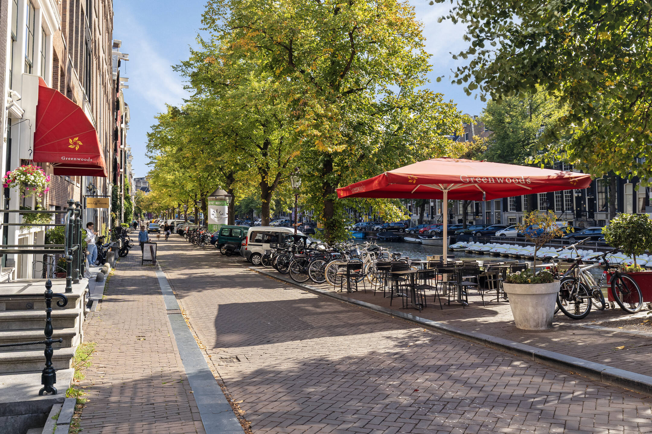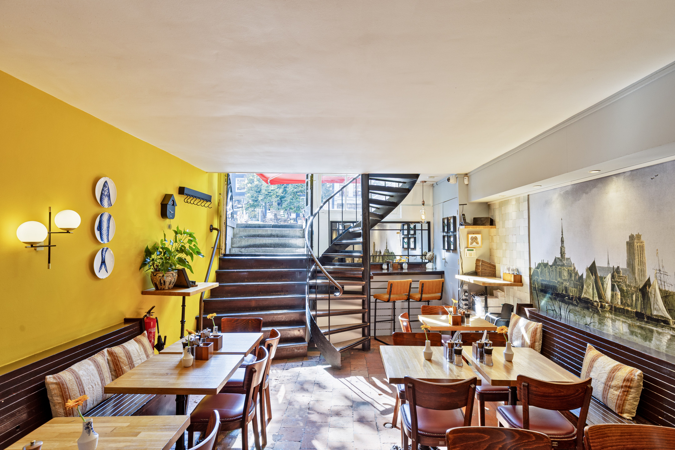 Een groot pluspunt is het ruime terras aan de overzijde van de straat, direct aan het water. Met plek voor circa 25 gasten en sfeervolle parasols, biedt dit terras een intieme setting en profiteert het van de levendigheid rondom de Leidsestraat en de Keizersgracht.