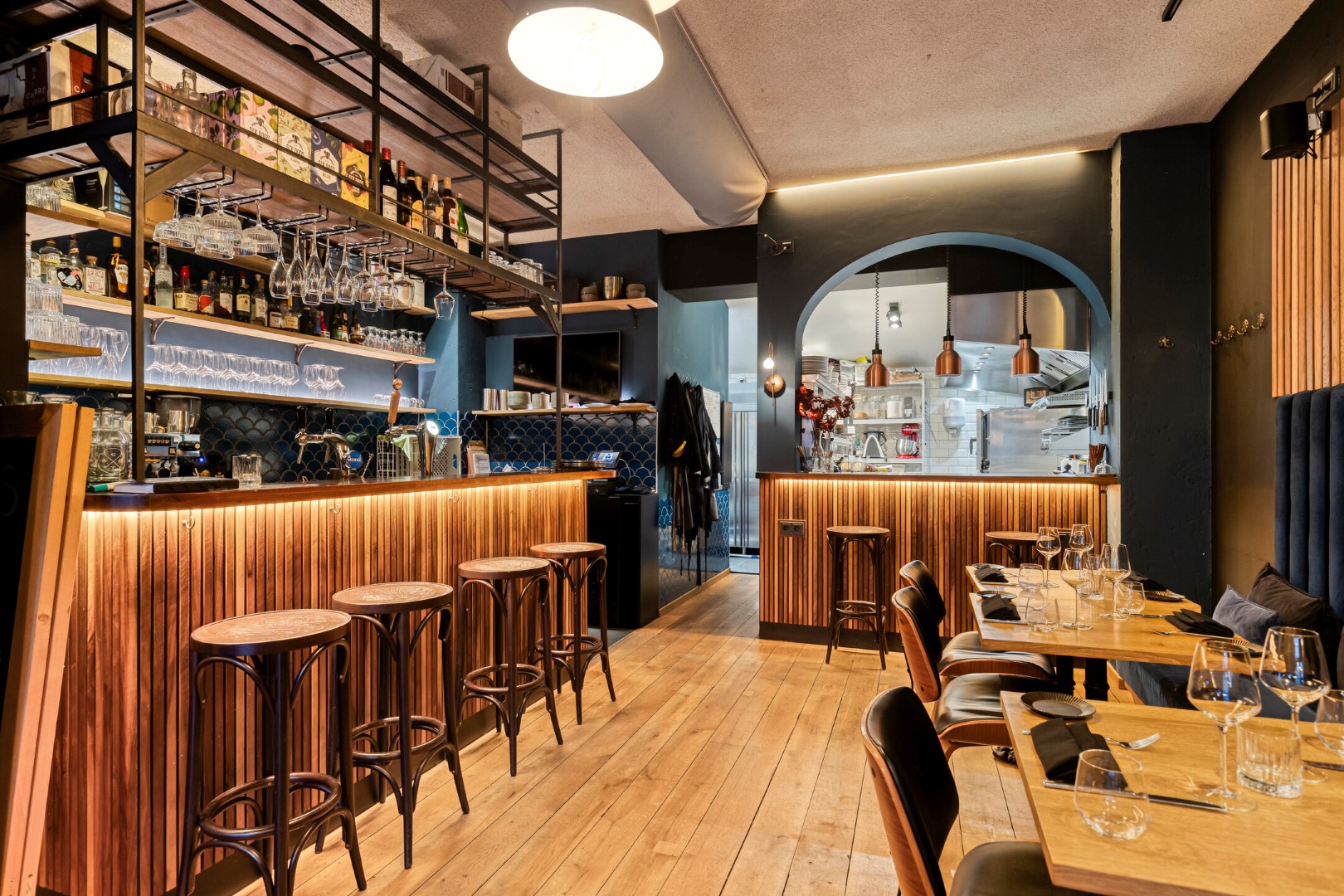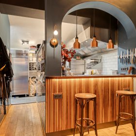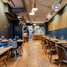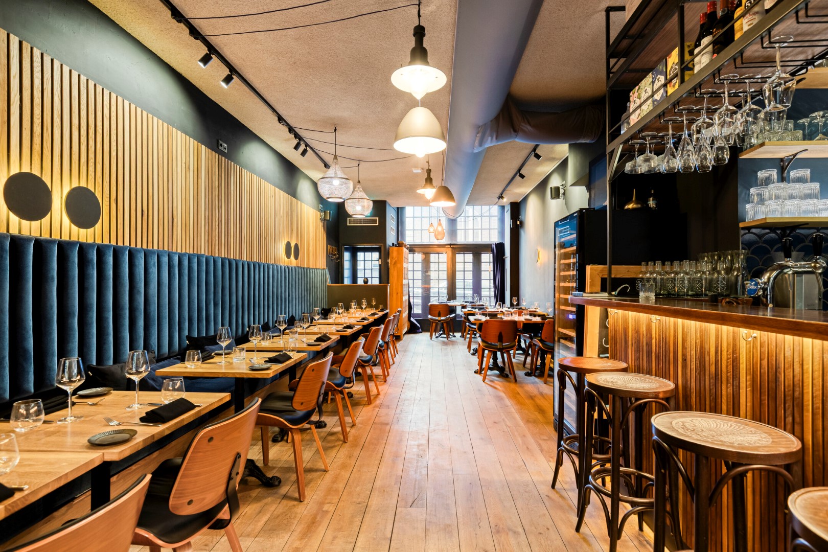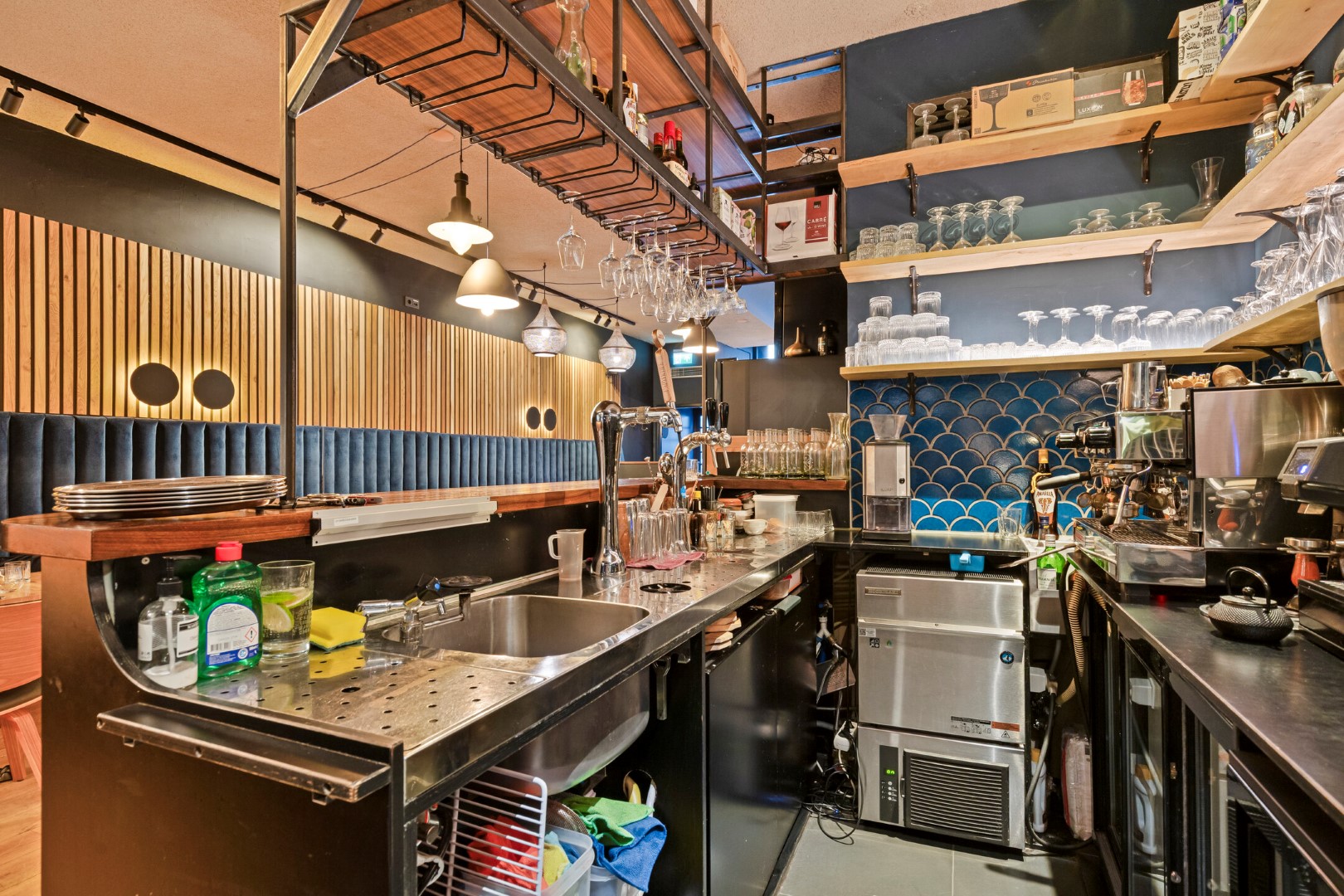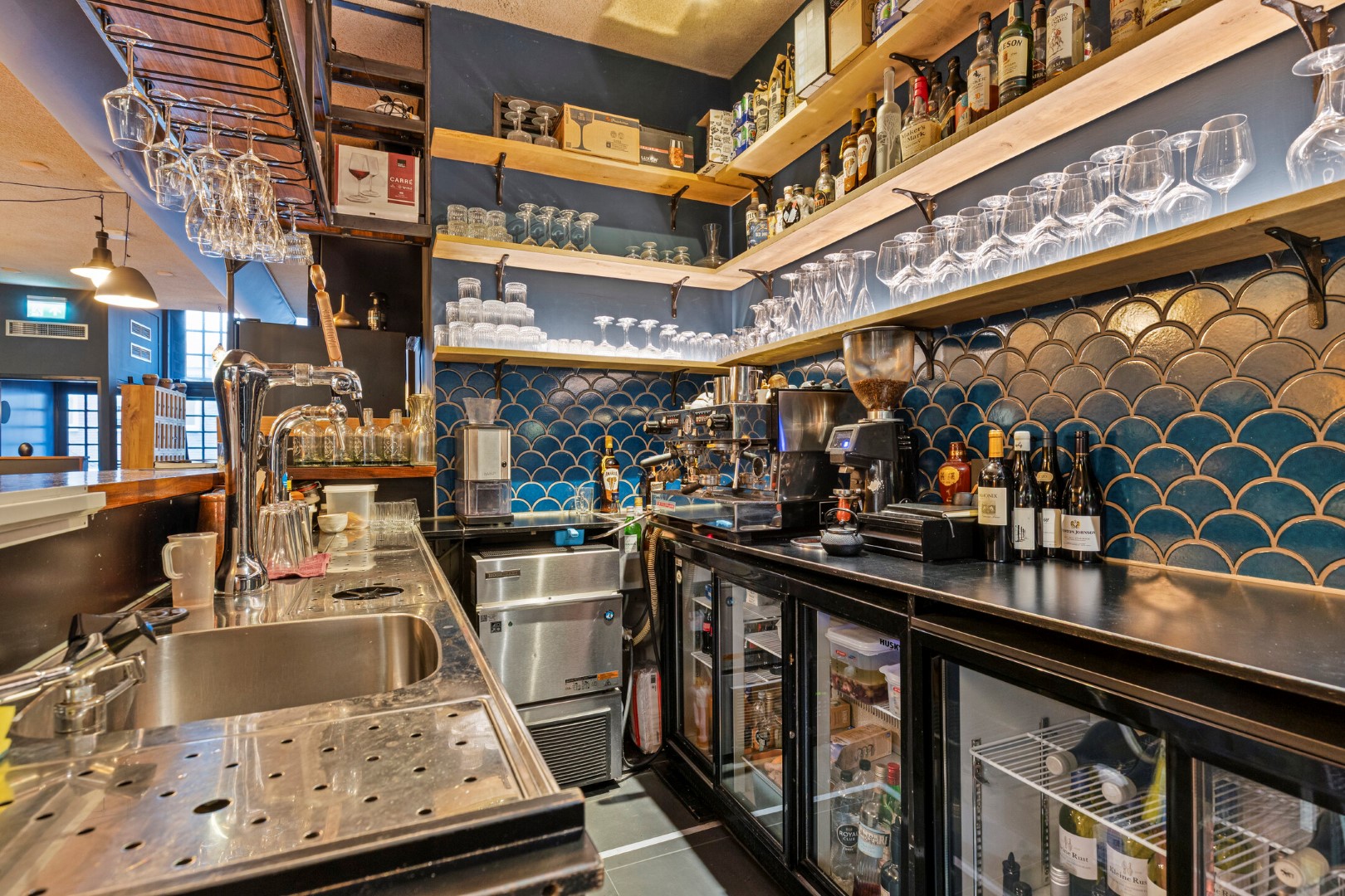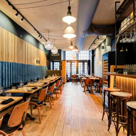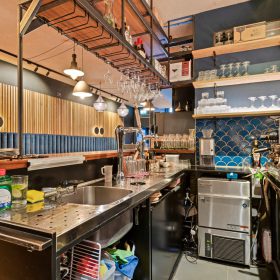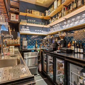 Aan de voordzijde beschikt de zaak over twee openslaande deuren, welke met name bij mooi weer zorgen voor extra zichtbaarheid en aantrekkingskracht. Binnen is het interieur stijlvol en warm ingericht, met een nette bar en comfortabele zitplekken. De zaak is gelijkvloers en biedt plaats aan circa 40 zitplaatsen.