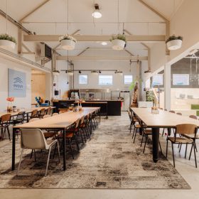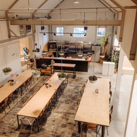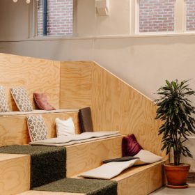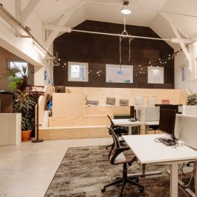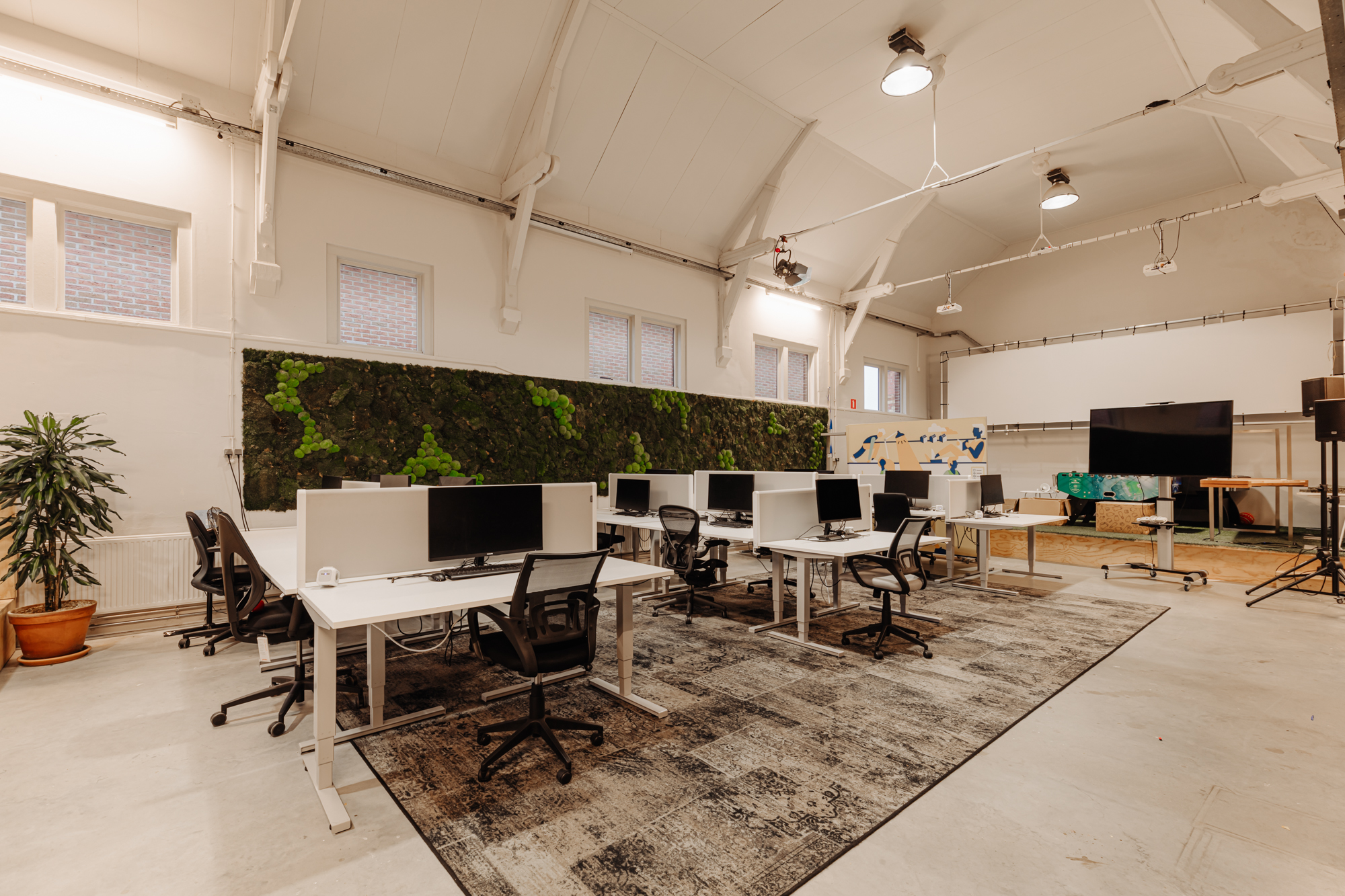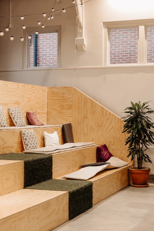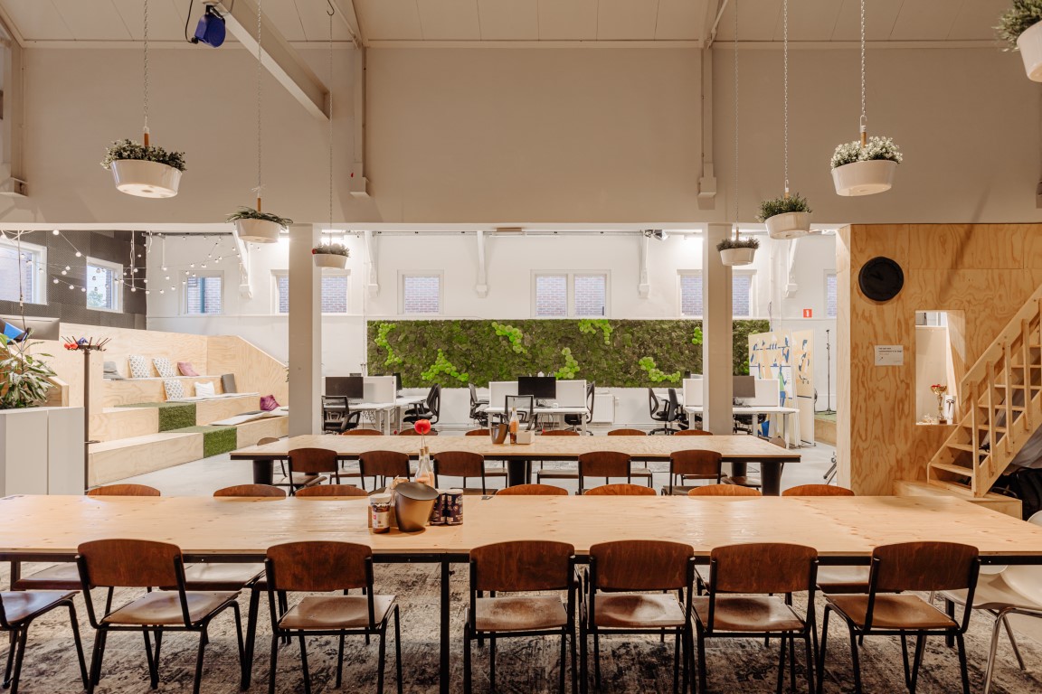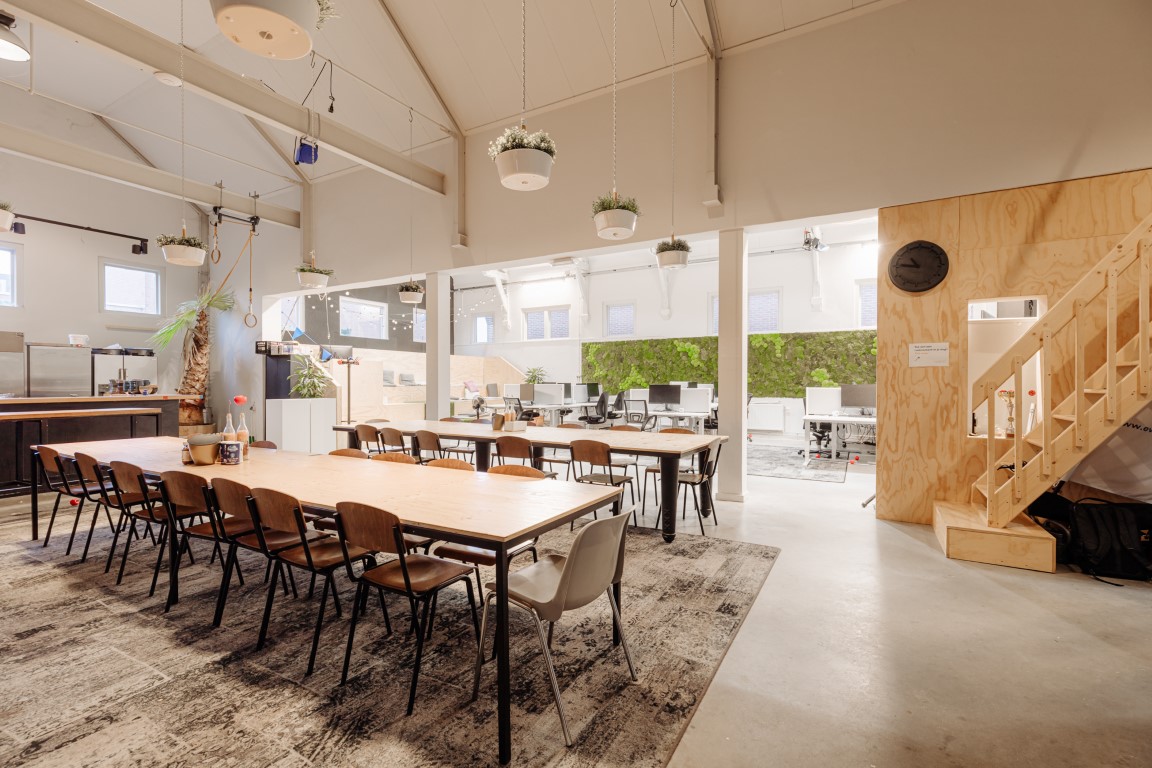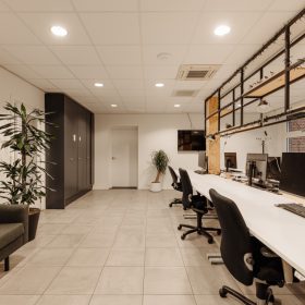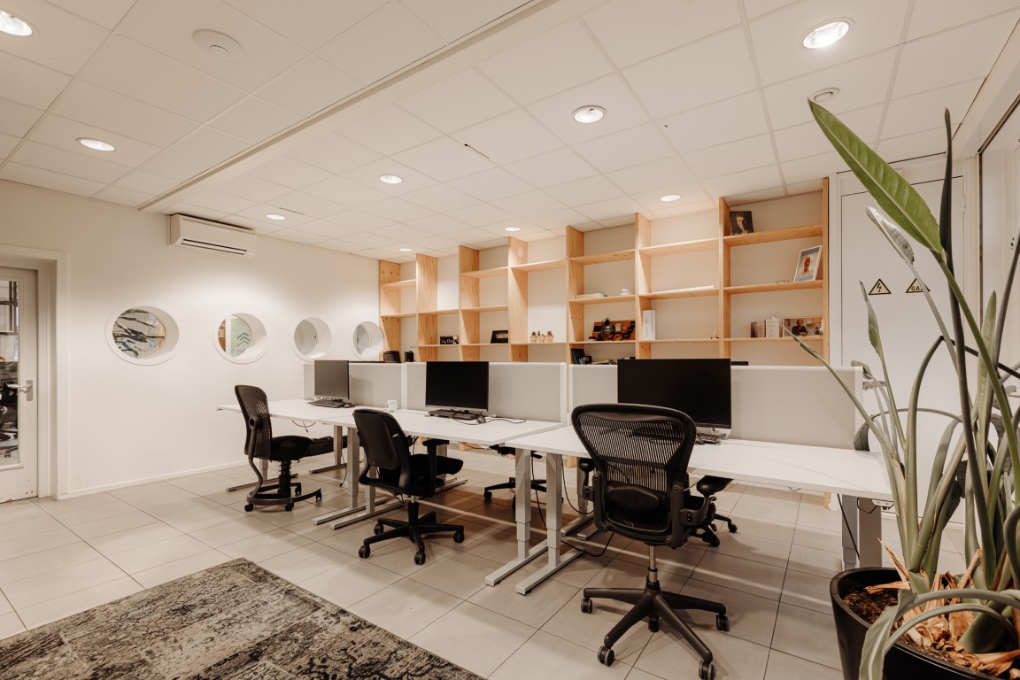 De ruimte is verdeeld over de begane grond en een entresol en beschikt over een eigen entree. De huidige indeling bestaat uit meerdere kantoorruimtes en open gedeelten die nu dienstdoen als kantoor- en werkruimte, maar zich uitstekend lenen voor een restaurant- of horecaconcept. De vrije hoogte en het open karakter maken de ruimte flexibel in te delen, waardoor uiteenlopende formules mogelijk zijn.