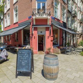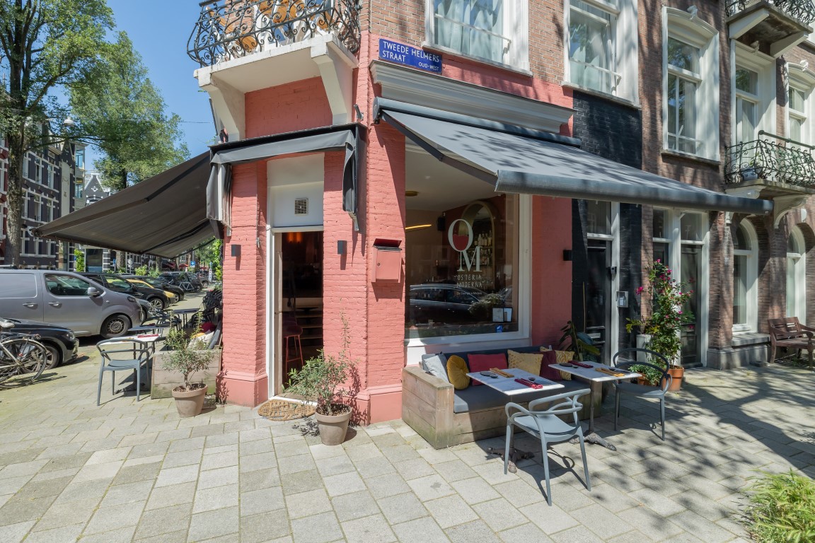 Aan de Tweede Helmersstraat bevindt zich dit verzorgde restaurant met een warme en nette uitstraling. De zaak is vijf jaar geleden volledig verbouwd en verkeert daardoor in uitstekende staat. Dankzij de brede raampartijen valt er veel natuurlijk licht binnen, wat de ruimte een open en uitnodigende sfeer geeft.