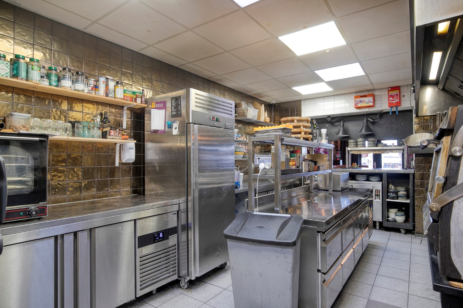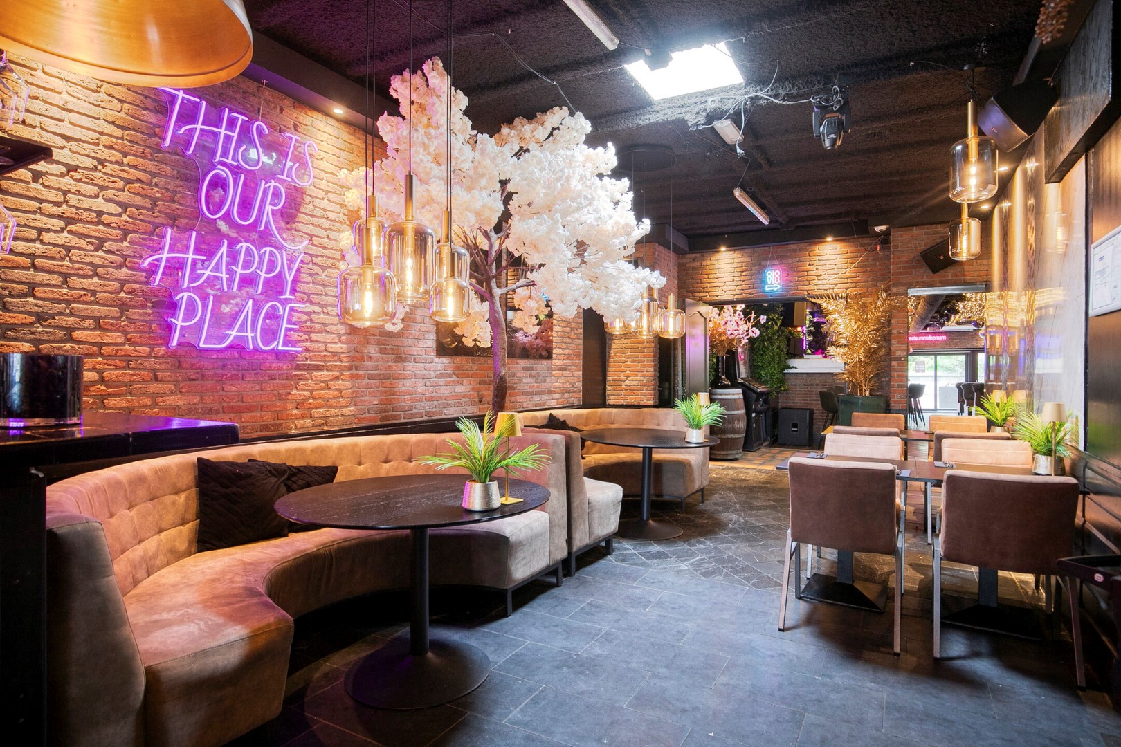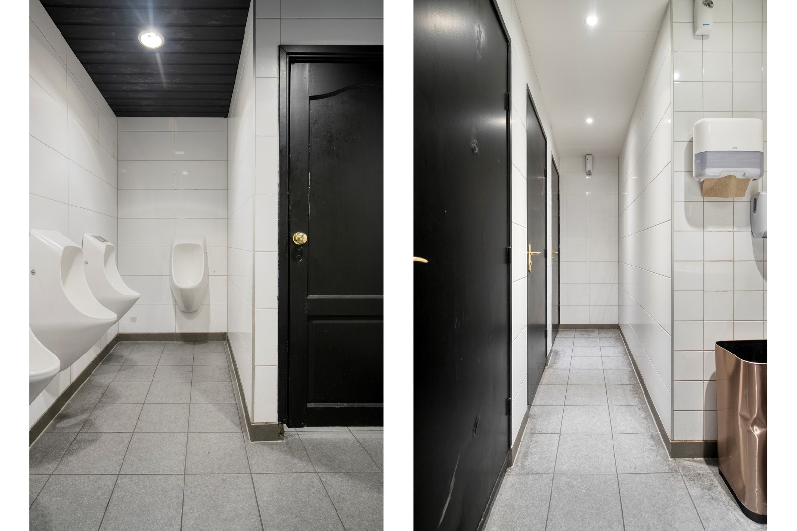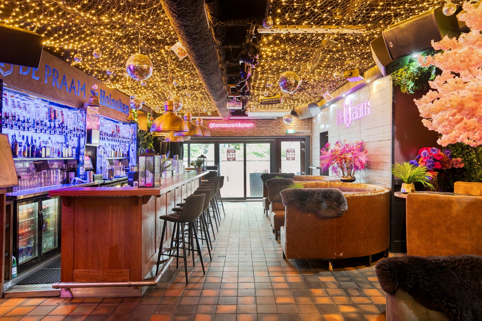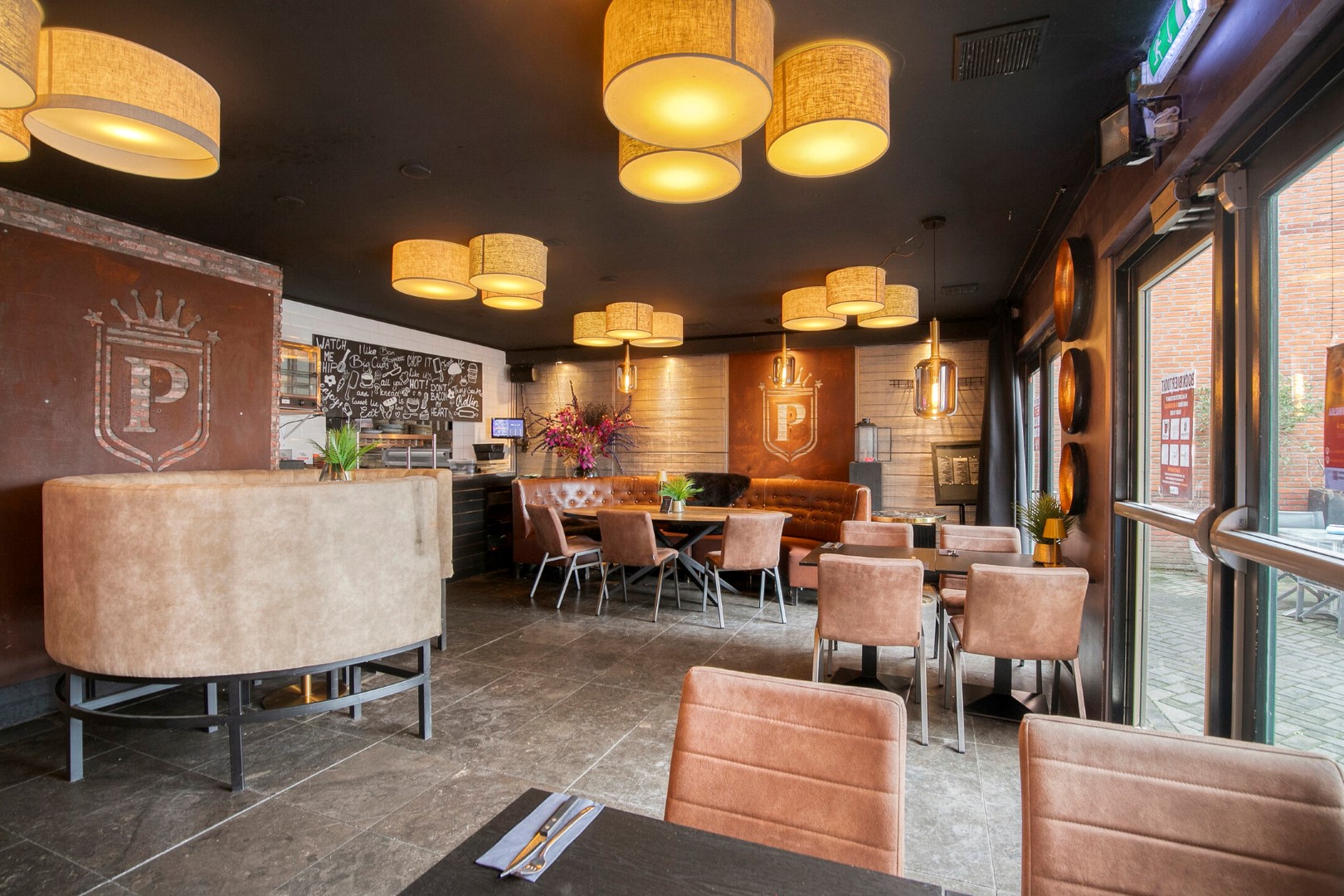 Bij binnenkomst betreedt men de verkoopruimte, die warm en modern is ingericht. De zaak beschikt over diverse zitgelegenheden, waaronder comfortabele banken, gezellige tafels en zitplekken aan de bar. Dankzij de grote ramen aan de voorzijde valt er veel natuurlijk licht binnen, wat zorgt voor een open en uitnodigende uitstraling. Vanuit de zaak heeft men bovendien uitzicht op het terras aan de achterzijde. De sfeervolle bar is volledig uitgerust met alle benodigde apparatuur, en achterin bevindt zich de professioneel ingerichte keuken met ruime werkbanken. Verder beschikt de zaak over een dubbele toiletgroep en voldoende opslagruimte.
