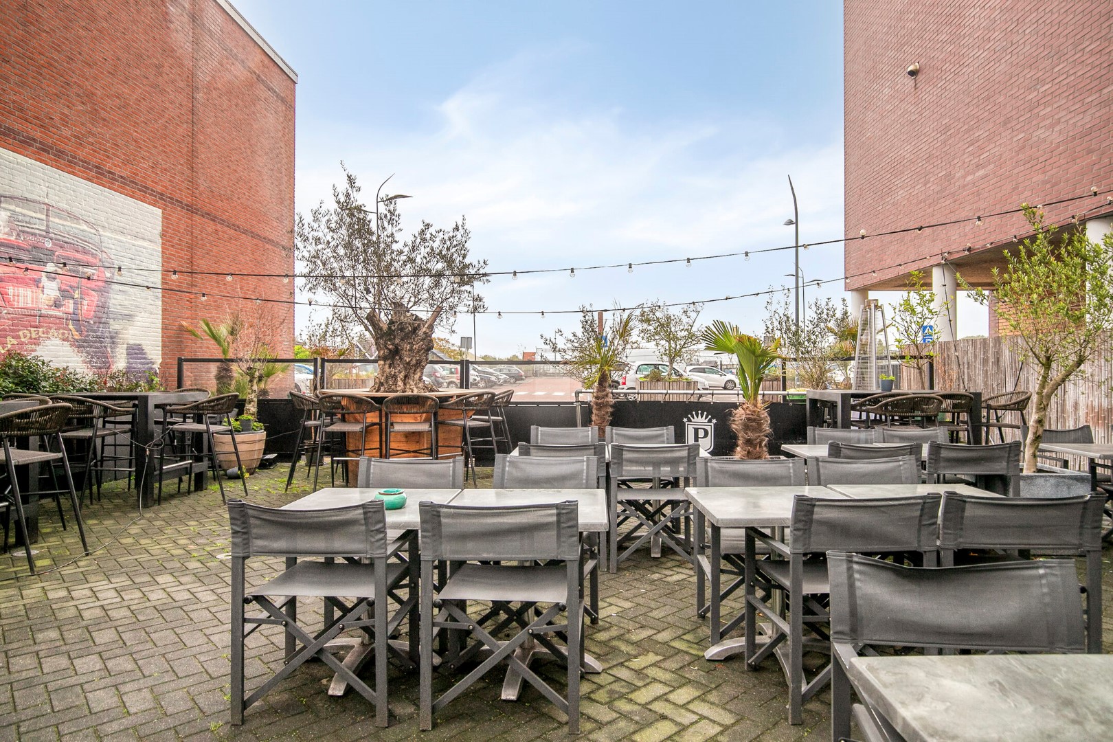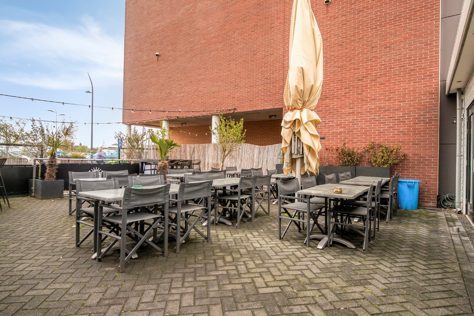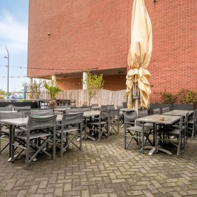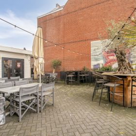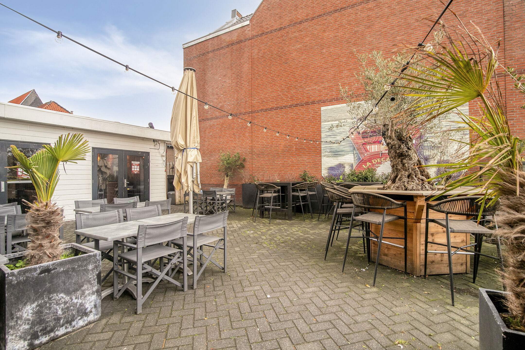 Aan de achterzijde ligt het ruime terras, met zitplaatsen voor circa 40 gasten. Het terras biedt vrij uitzicht op de straat en is een heerlijke plek om in de zon te zitten. Door de rustige ligging en de prettige indeling is het de ideale plek voor gasten.