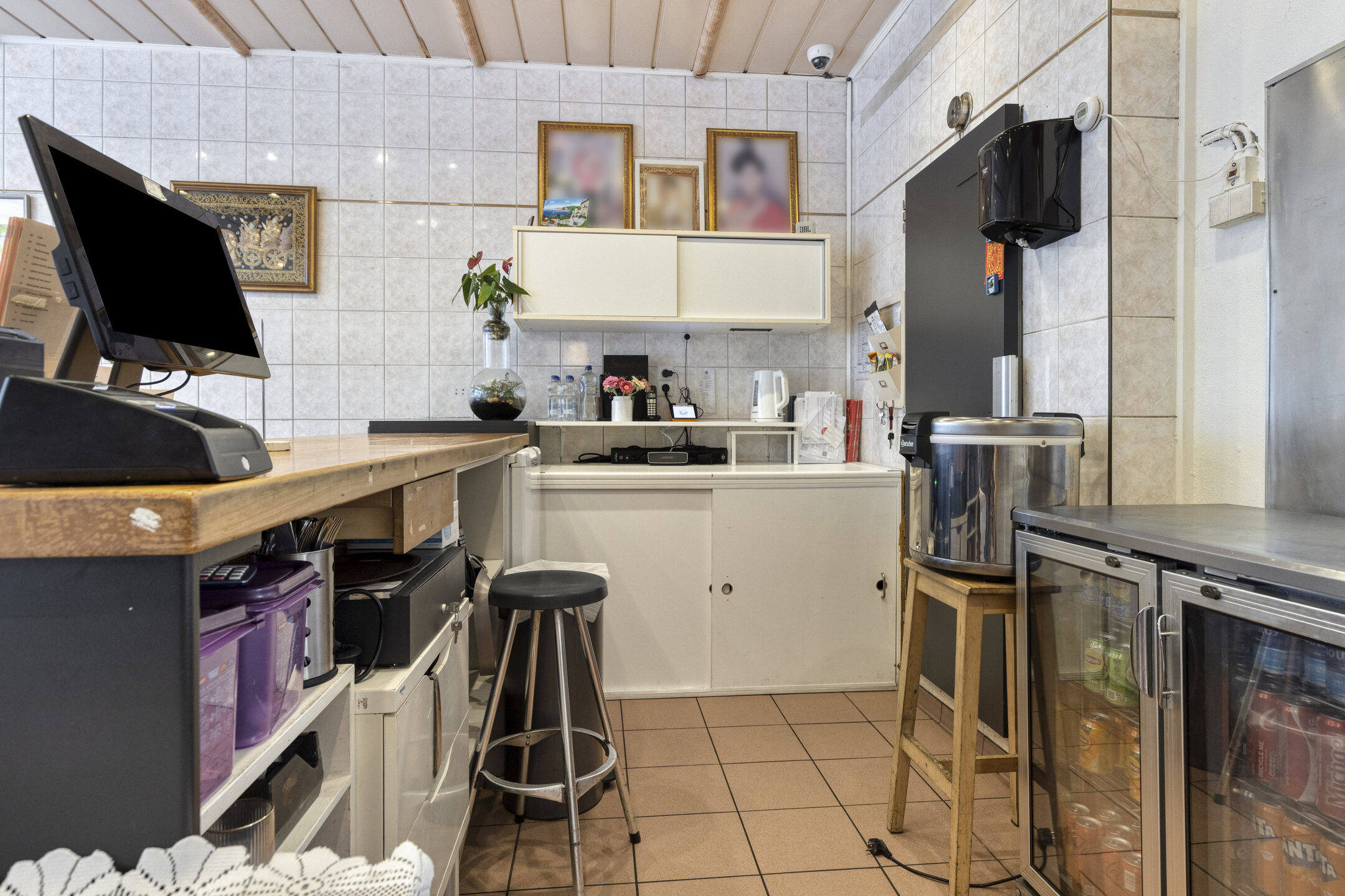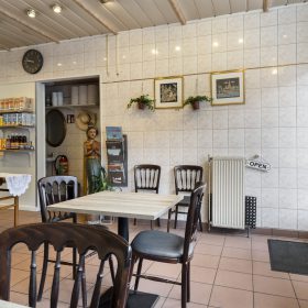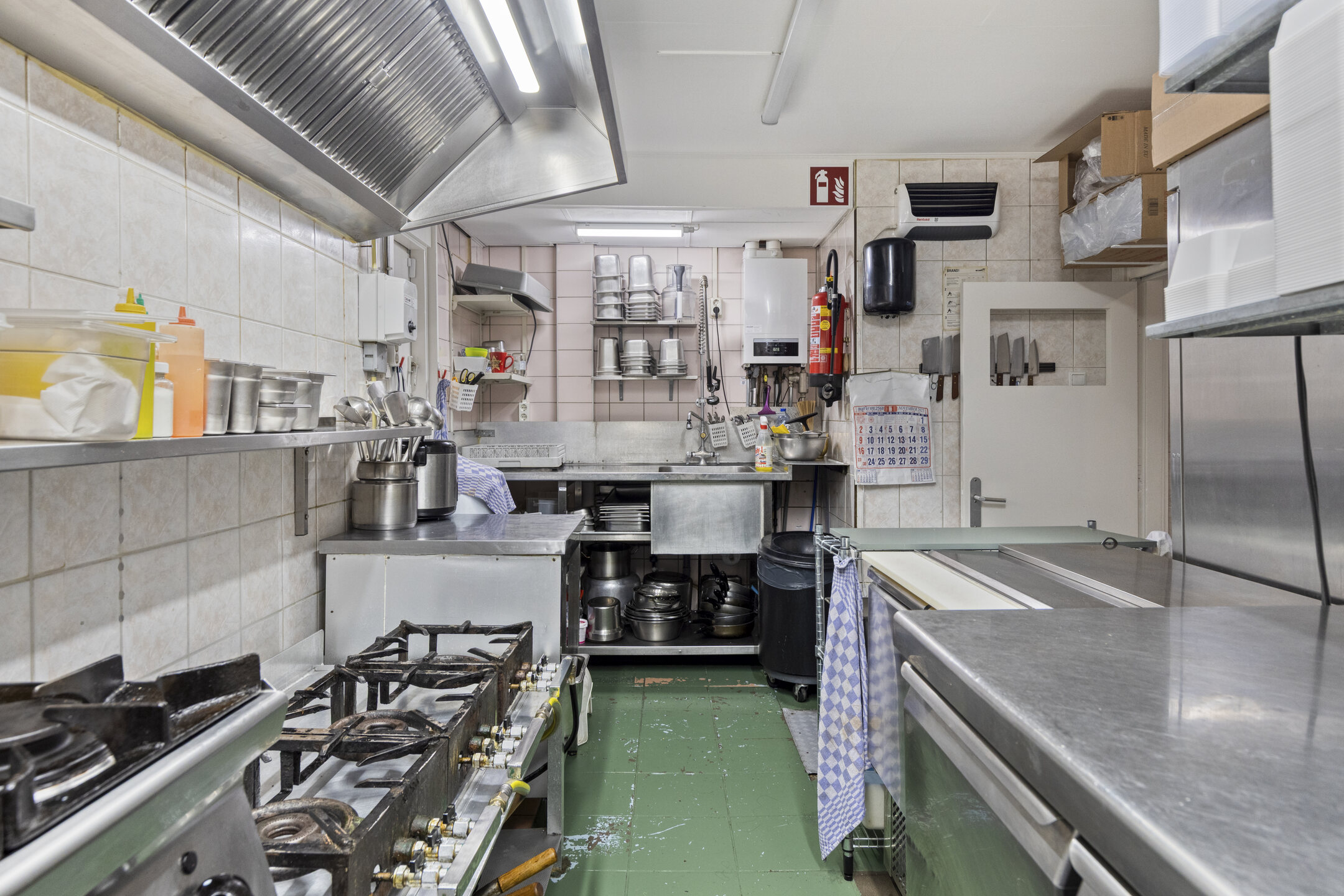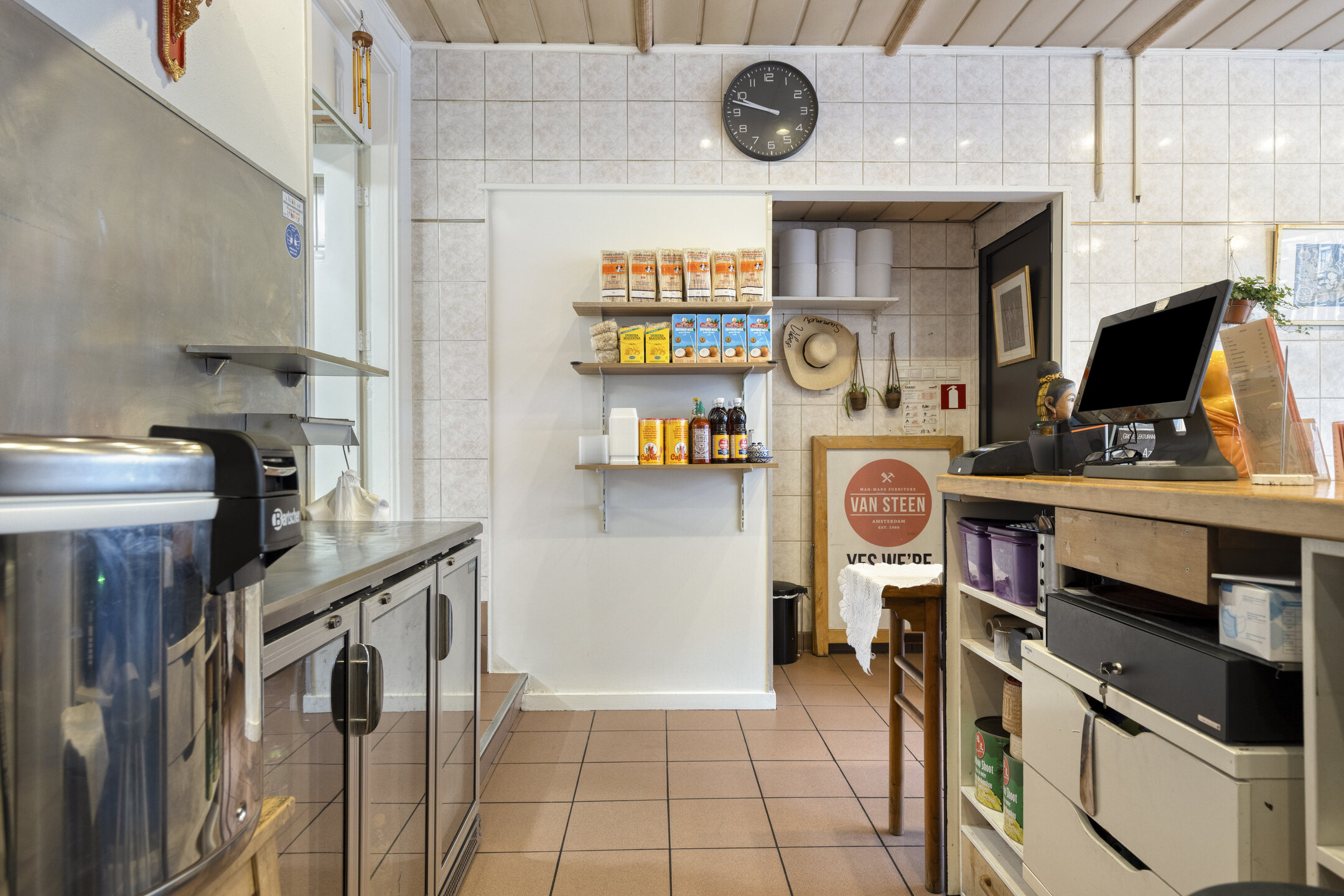 De zaak is sfeervol ingericht. Achterin bevindt zich een compacte maar efficiënte keuken. Aan de achterzijde van het pand ligt een kleine binnenplaats, momenteel in gebruik als opslagruimte. Daarnaast is er een kelder die extra opslagmogelijkheden biedt.