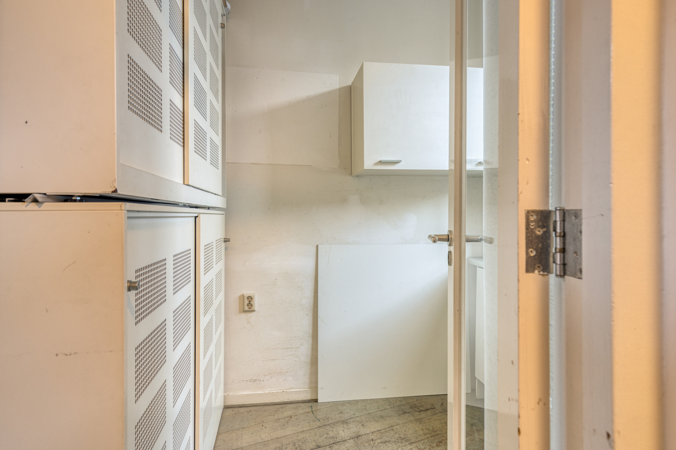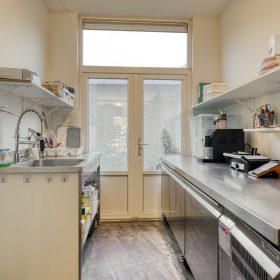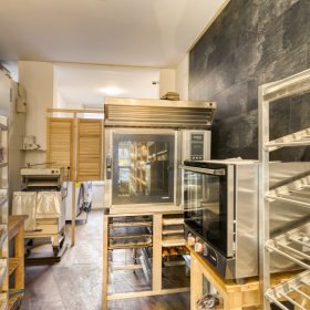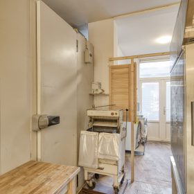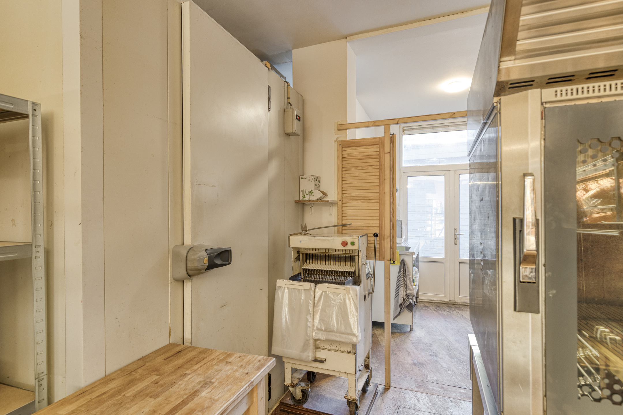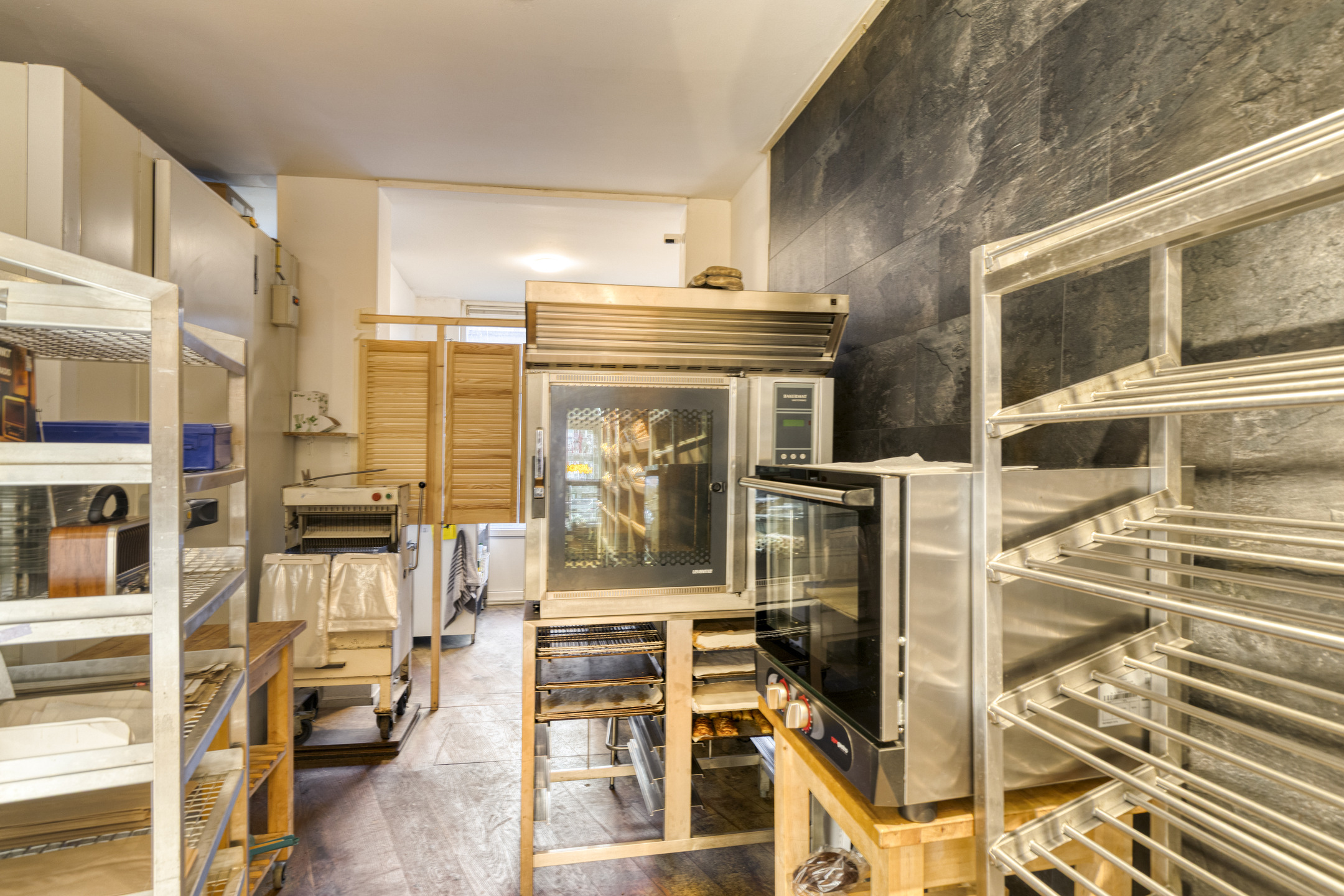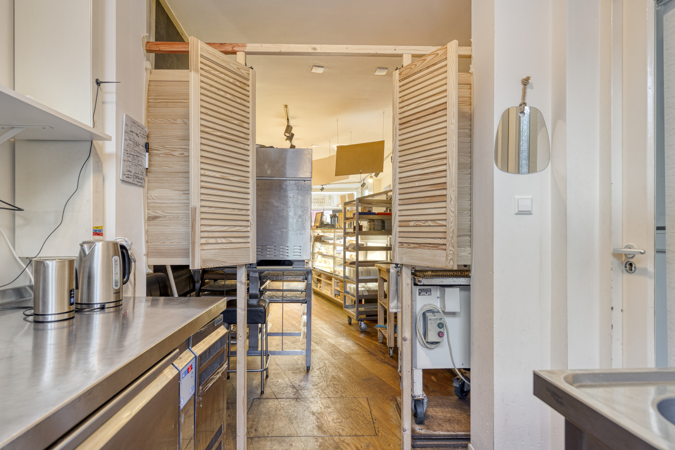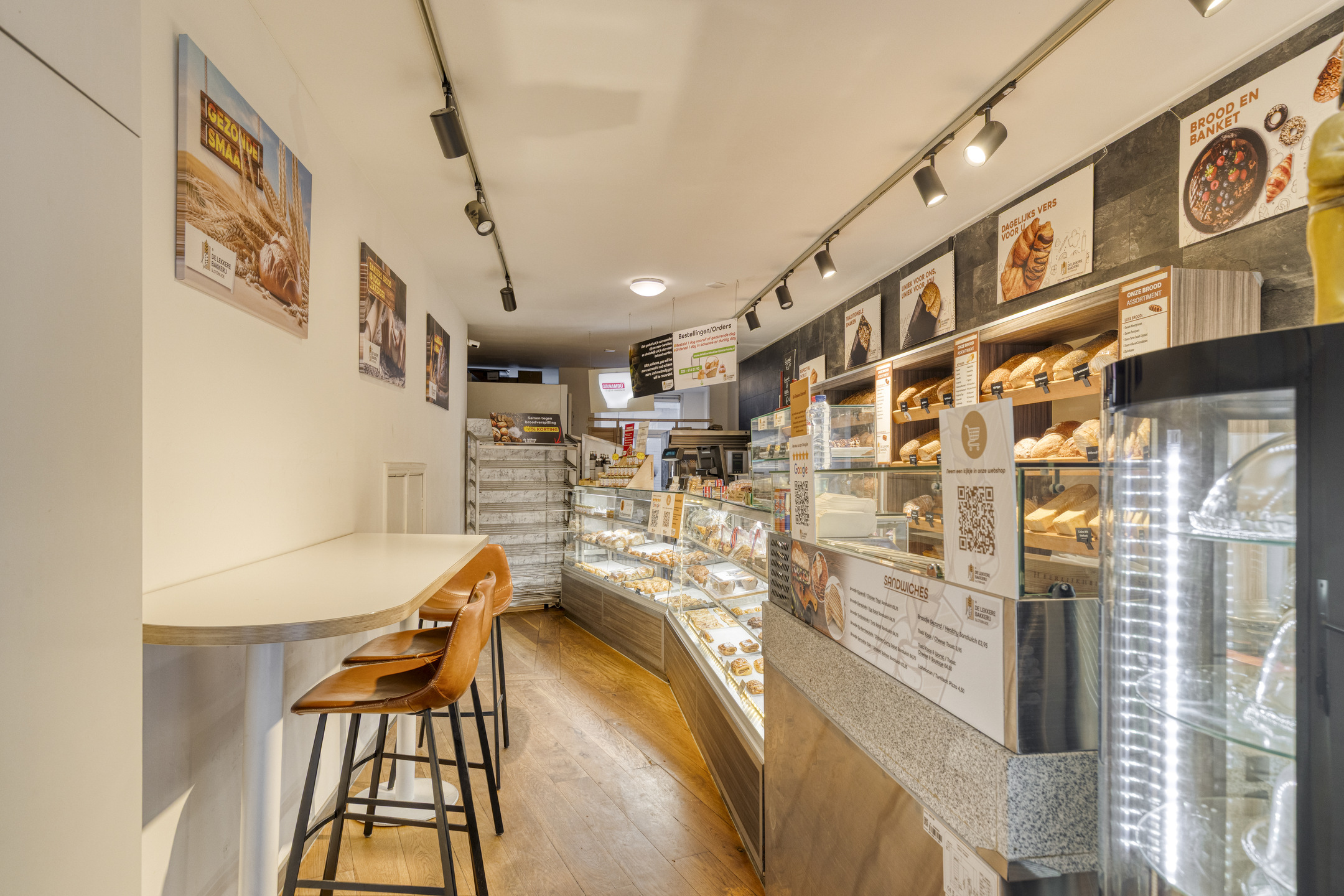 Aan de voorzijde bevindt zich de verkoopruimte, voorzien van een overzichtelijke toonbank en vitrines voor het presenteren van vers gebakken producten. Er zijn circa drie zitplaatsen gecreëerd waar klanten ter plekke kunnen genieten van koffie en iets lekkers. Achter de verkoopruimte ligt de keuken, die volledig is ingericht voor de bereiding en afwerking van de producten.