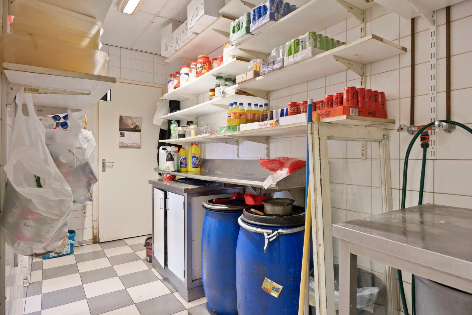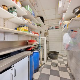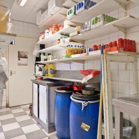 Binnen biedt de snackbar een verzorgde verkoopruimte met daarachter een compacte opslagruimte. Ook zijn er bij binnenkomst vier barkrukken die gasten de mogelijkheid geven om binnen te zitten. Op de eerste verdieping is extra opslag aanwezig, wat zorgt voor praktische indelingsmogelijkheden.