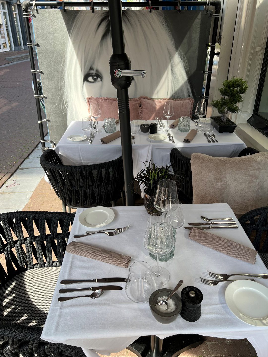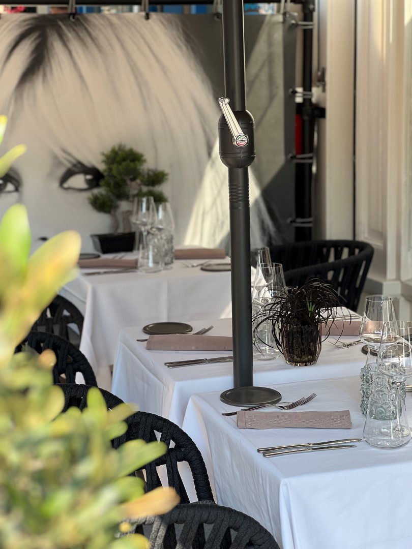 Aan de voorzijde beschikt het restaurant over een terras met circa tien zitplaatsen. Dit terras ligt aan de straatzijde, wat zorgt voor een uitstekende zichtbaarheid en een levendige, gezellige sfeer waarin gasten kunnen genieten van het straatbeeld.