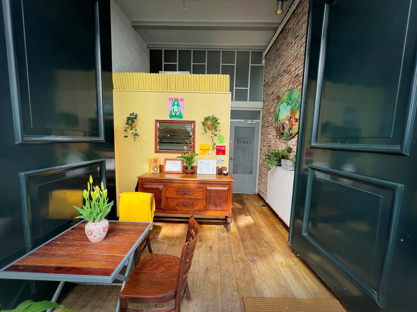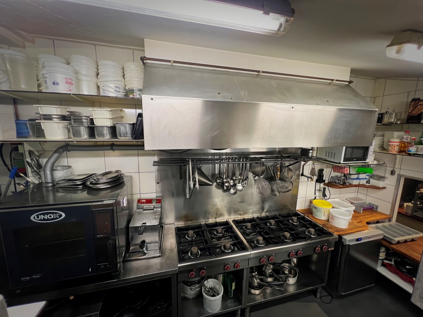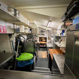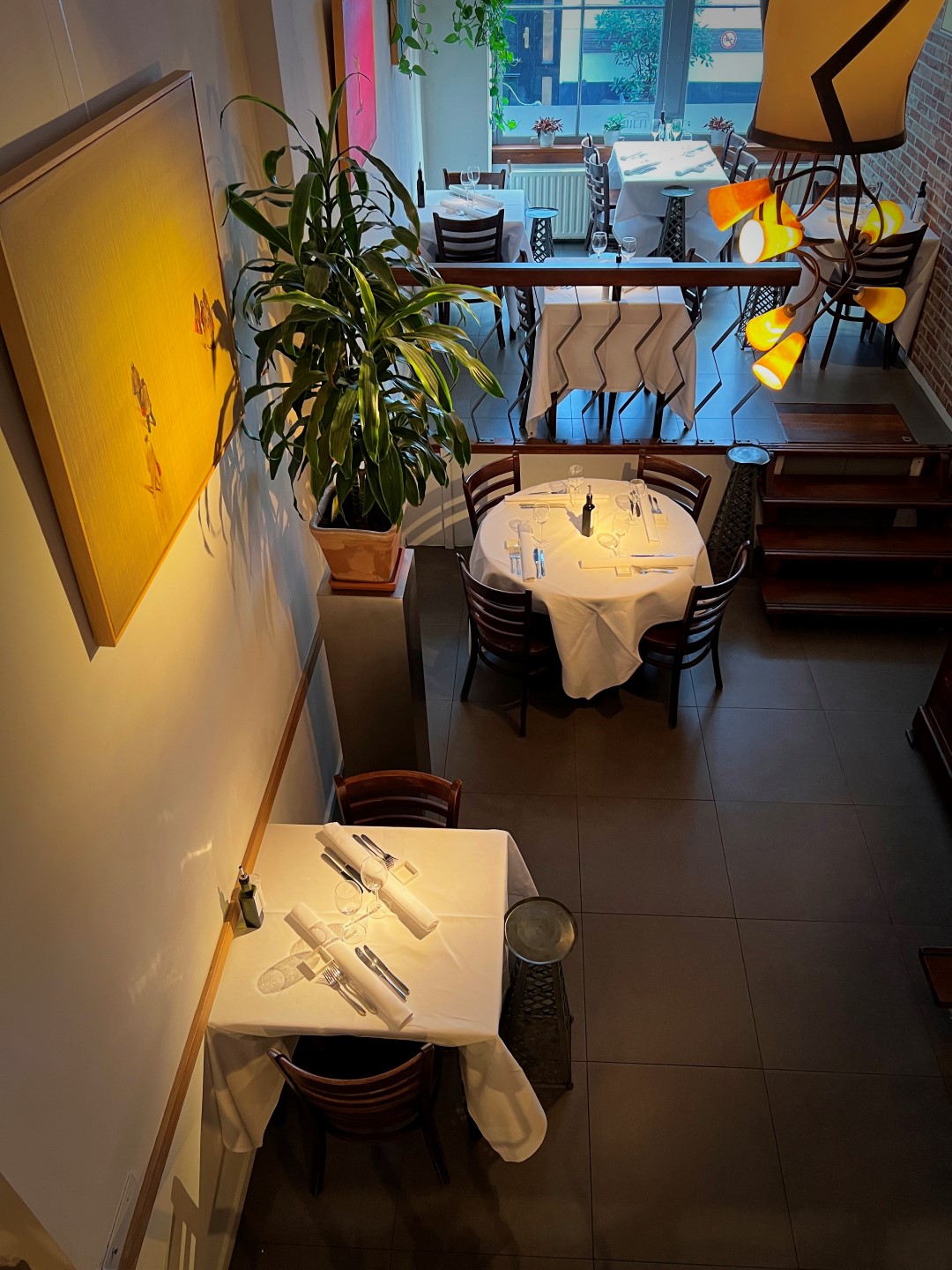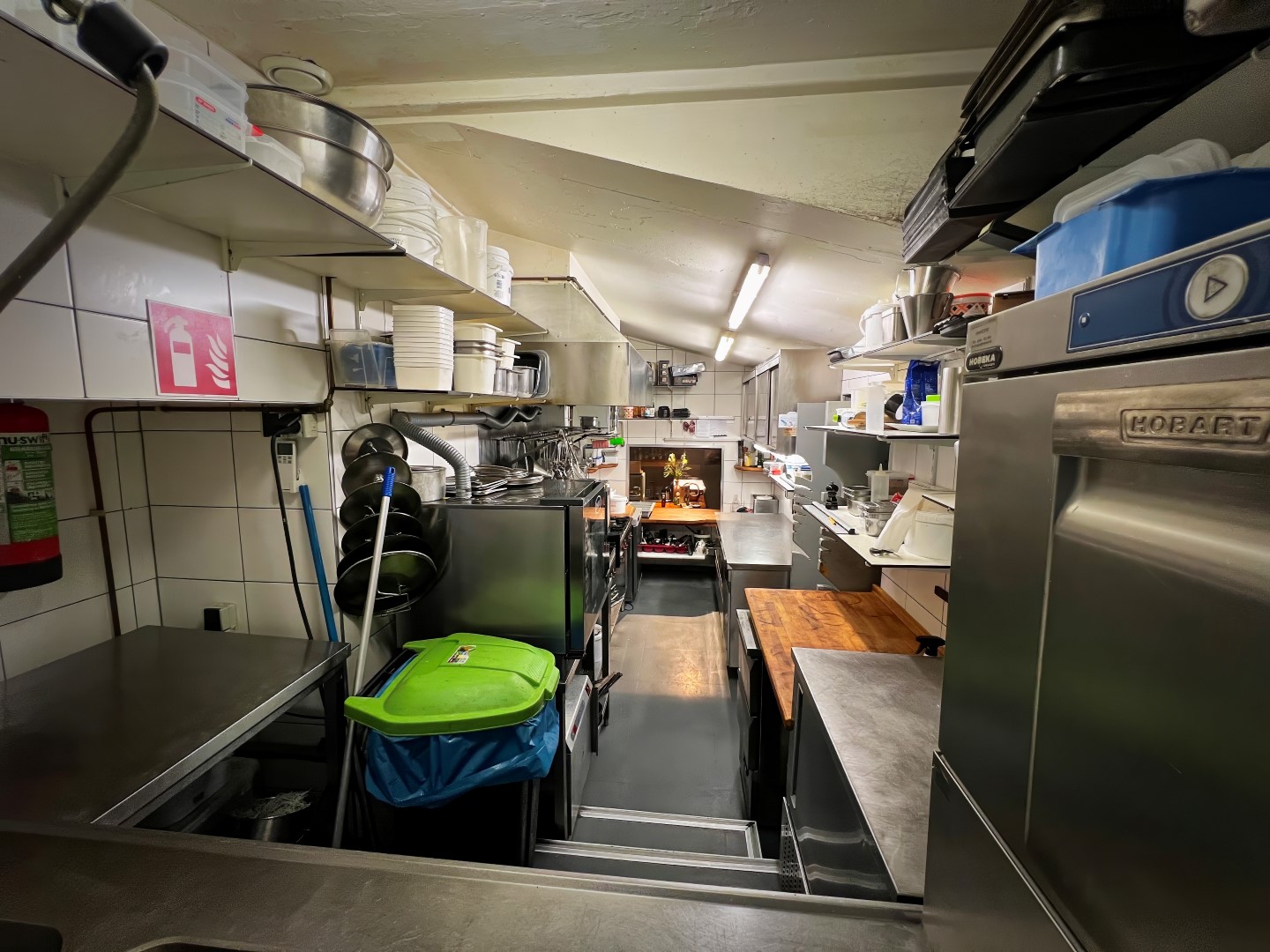 De indeling is speels en gelaagd, met een prettige natuurlijke lichtinval door de open opzet van het restaurant. De zitplaatsen zijn verdeeld over de begane grond en een entresol, wat zorgt voor een levendige en open sfeer. In het souterrain bevindt zich een ruime opslagruimte en de keuken is compleet ingericht en praktisch ingedeeld.